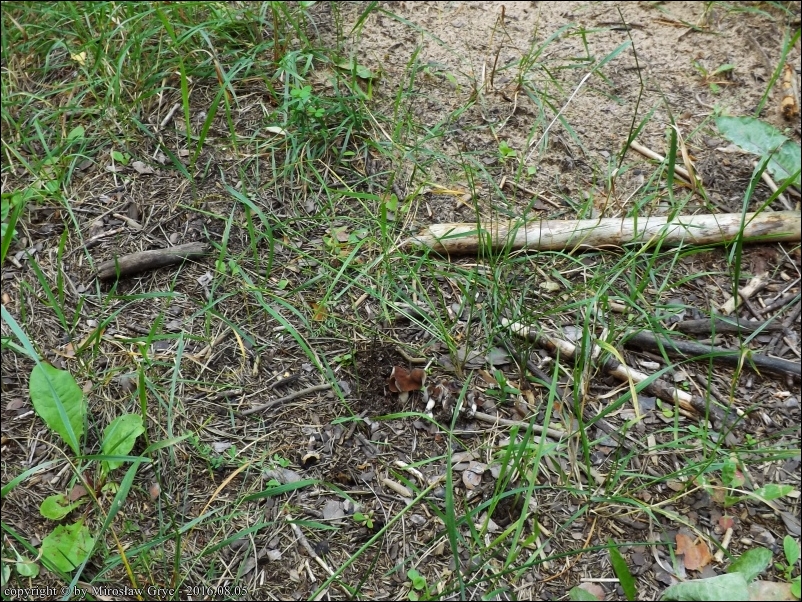 Substrat: Kilka owocników na ziemi użyźnionej resztkami drewna.