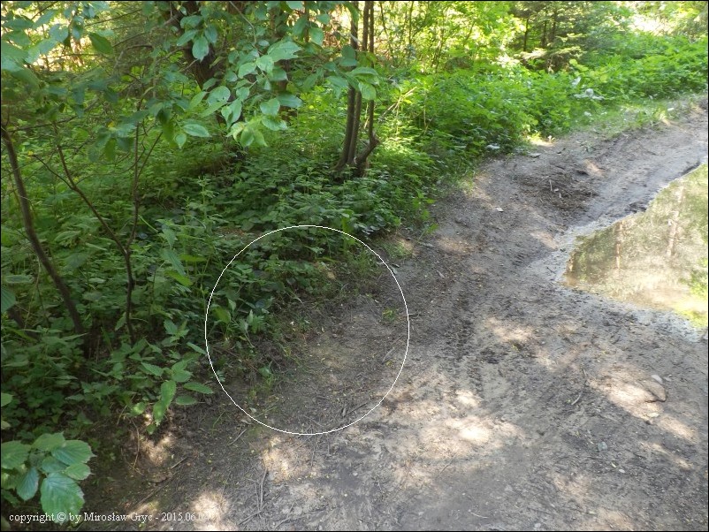 Lokalizacja: Około 1 km na SE od Ogrodniczek, skraj błotnistej drogi leśnej.