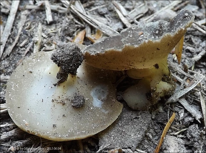 Substrat: Kilka owocników na poboczu błotnistej koleiny drogi leśnej.