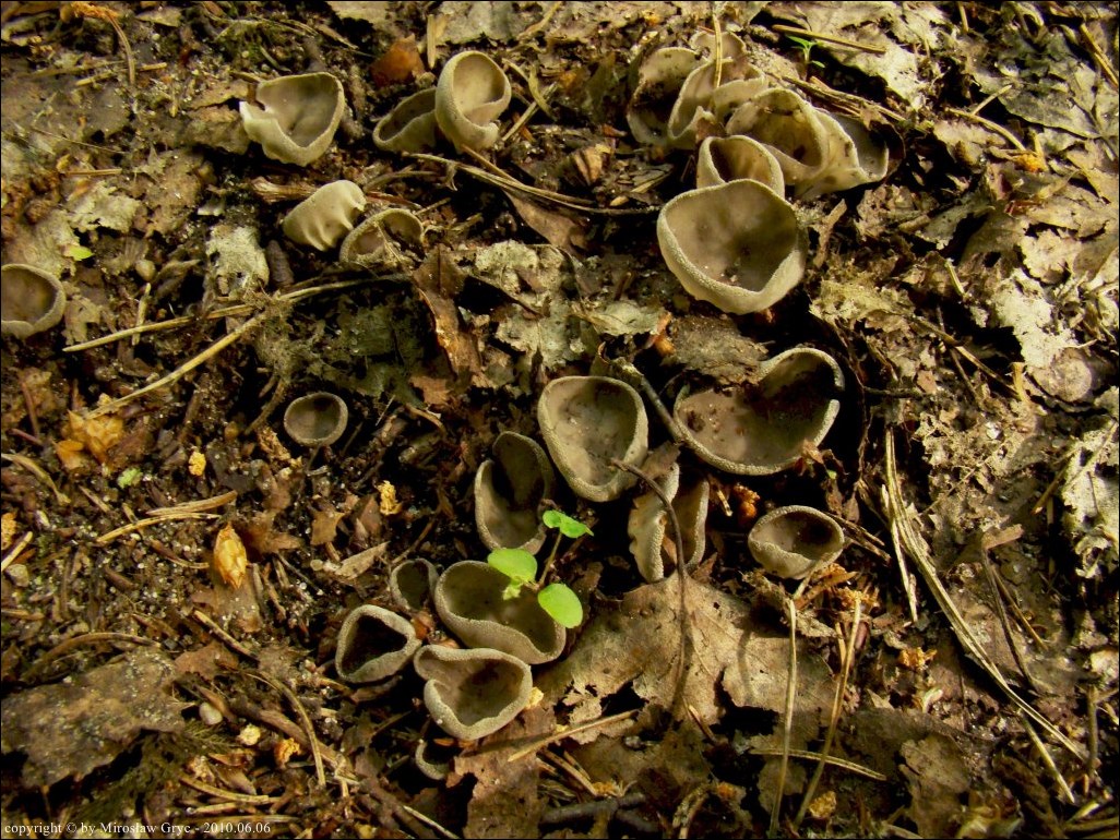 Siedlisko: Szerokie przydroże w lesie liściastym. Kilka owocników w jednej grupie.