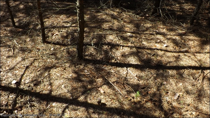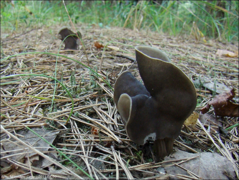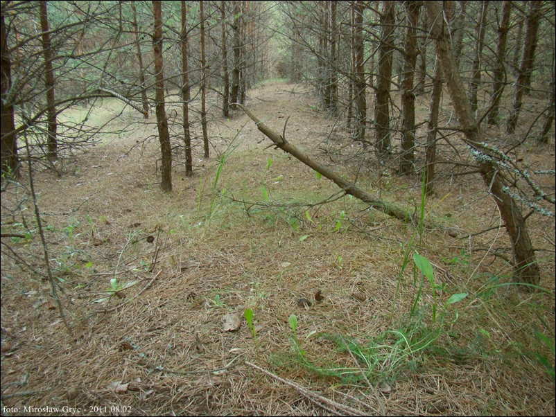 Lokalizacja: Stosunkowo jeszcze młody las sosnowy w pobliżu Ogrodniczek, zbocze nieużytkowanego od kilkunastu lat wyrobiska pożwirowego. Owocniki wyrastały zarówno w pobliżu brzozowego pasa obsadzeń jak też i w drzewostanie czysto sosnowym.