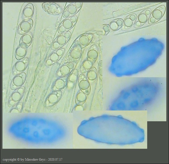 Notatka: Prezentuje dość częsty przypadek występowania na dojrzałych zarodnikach guzowatych narośli, do złudzenia przypominajacych ornamentację.
