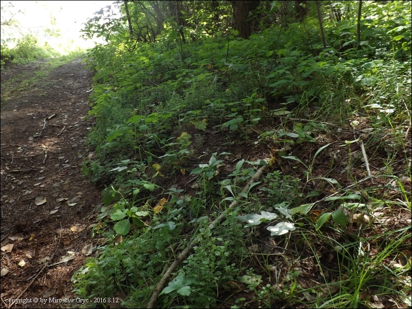 Siedlisko / Substrat: Las liściasty, pobocze drogi, na ziemi, w trawie.