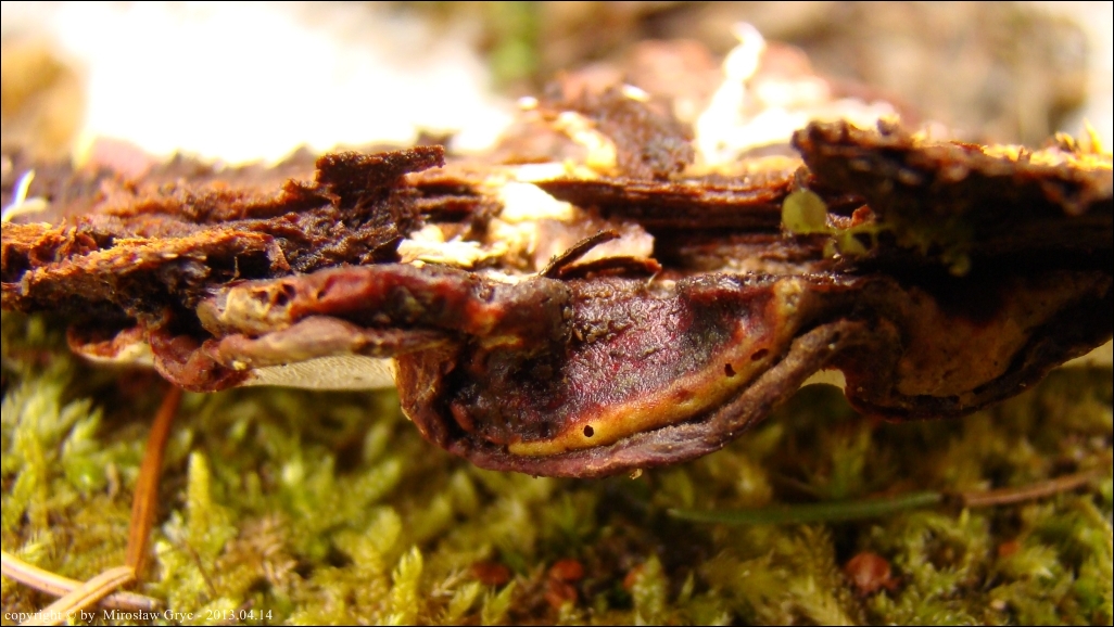 Substrat: Dolnej strona pnia powalonego świerka.