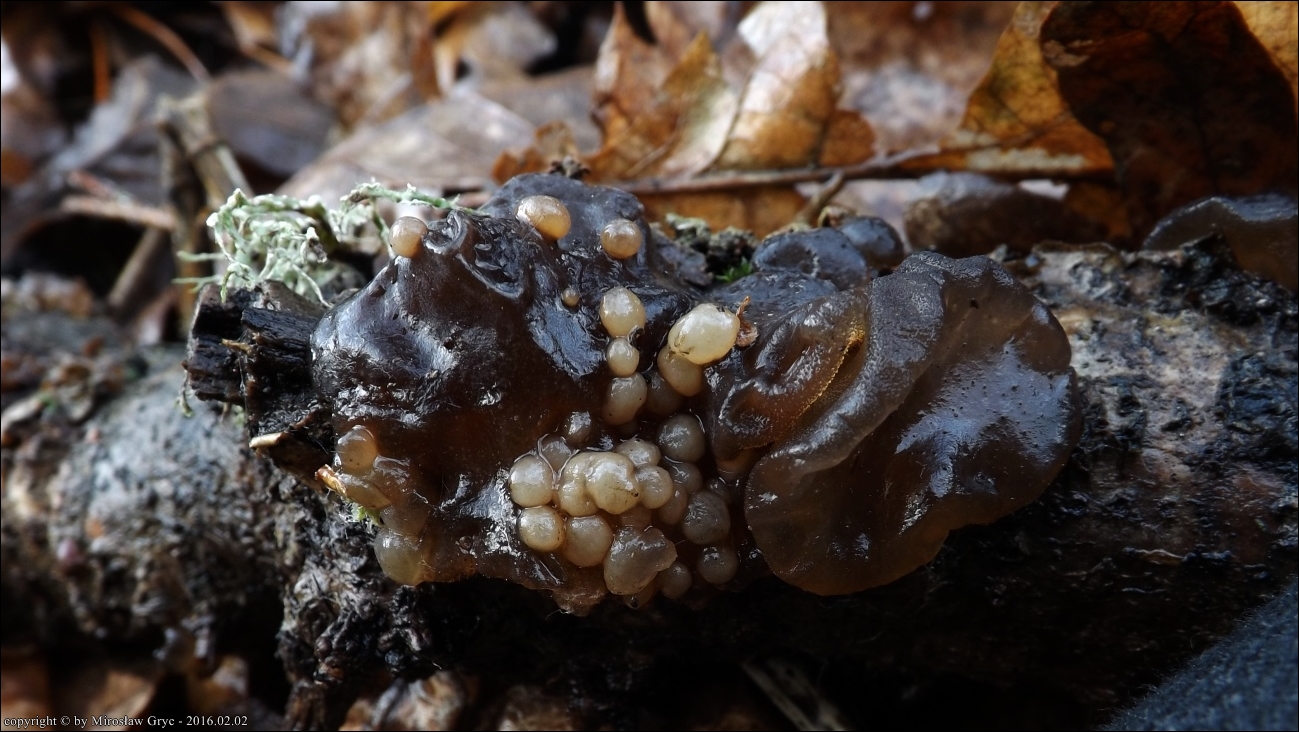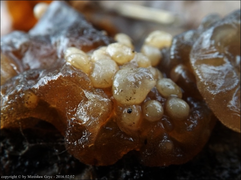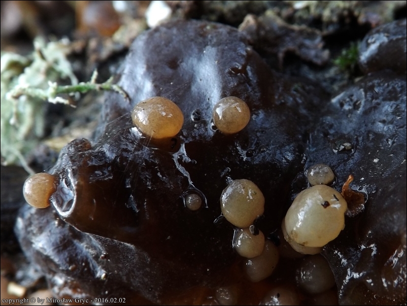 Substrat: Owocniki na kisielnicy trzoneczkowej (Exidia glandulosa), na leżącej na ziemi, gałęzi dębu.