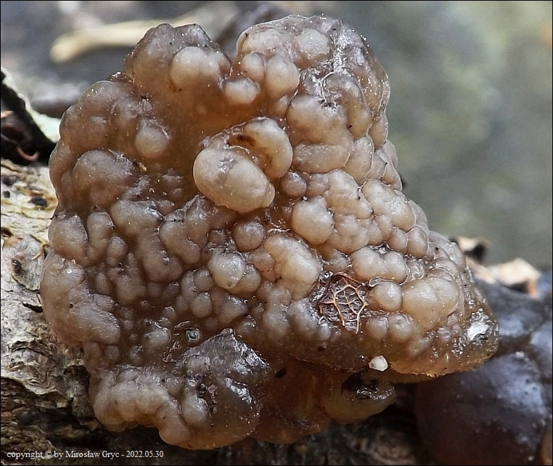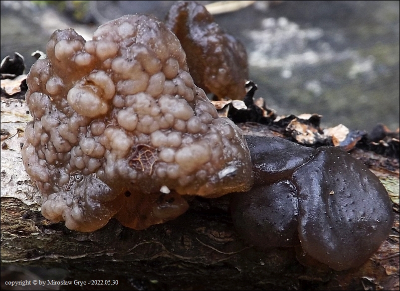 Substrat: Grupka owocników pasożytująca na kisielnicy trzoneczkowej (Exidia glandulosa), rosnącej na leżącej na ziemi gałęzi dębu.