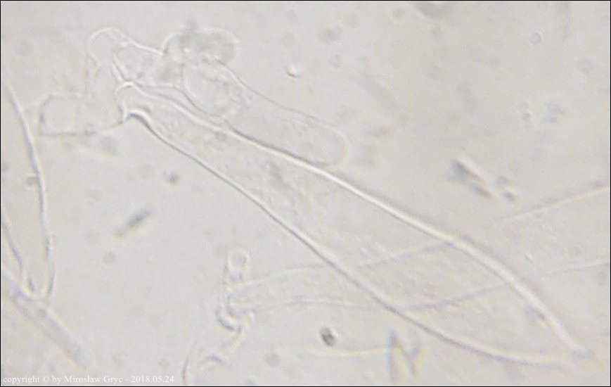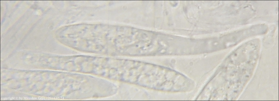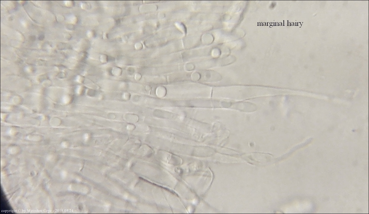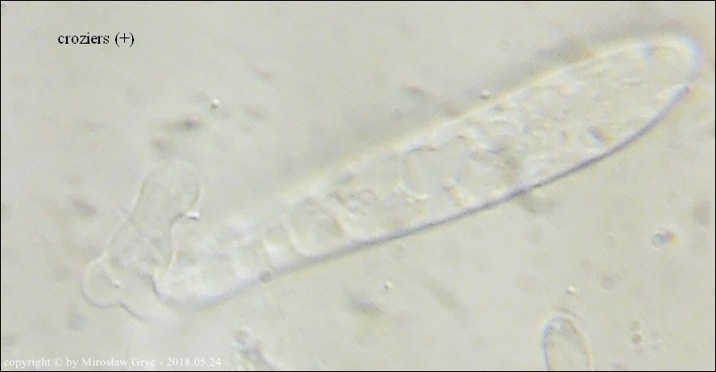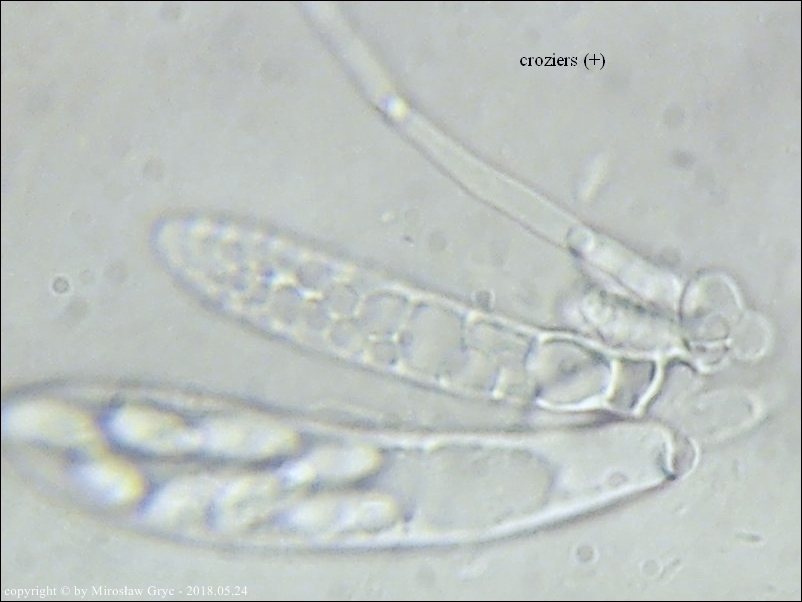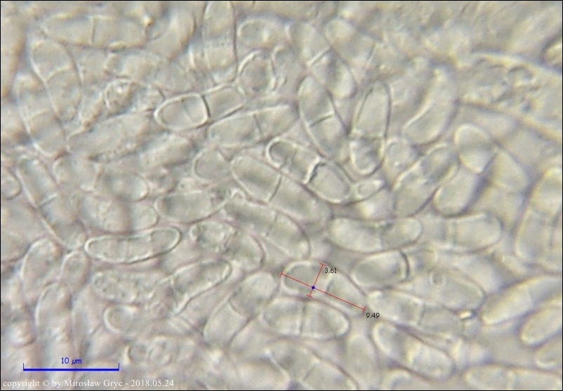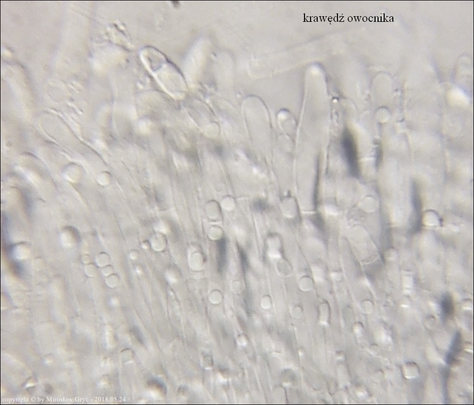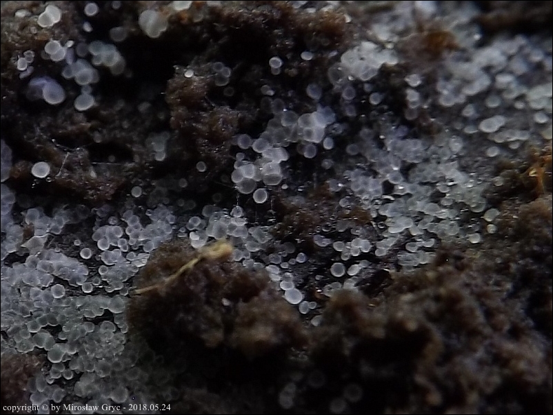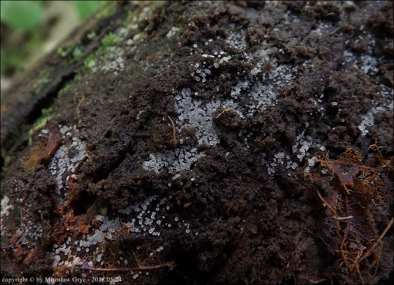 Substrat: Owocniki na dolnej stronie pnia liściastego, leżącego na wilgotnym podłożu.