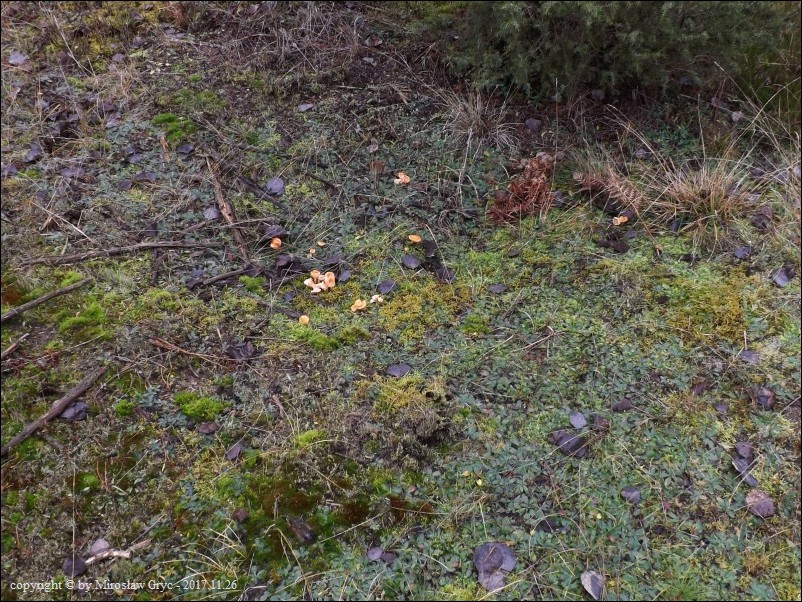 Substrat: Owocniki masowo w kilku grupach na ziemi.