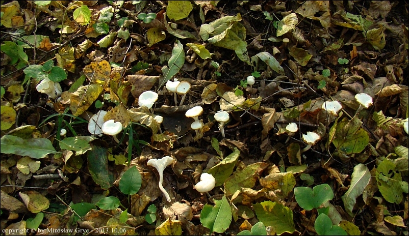 Siedlisko / Substrat: Fragment lasu o młodym, rzadkim zadrzewieniu, przeważnie grab, kilkanaście owocników na ściółce.
