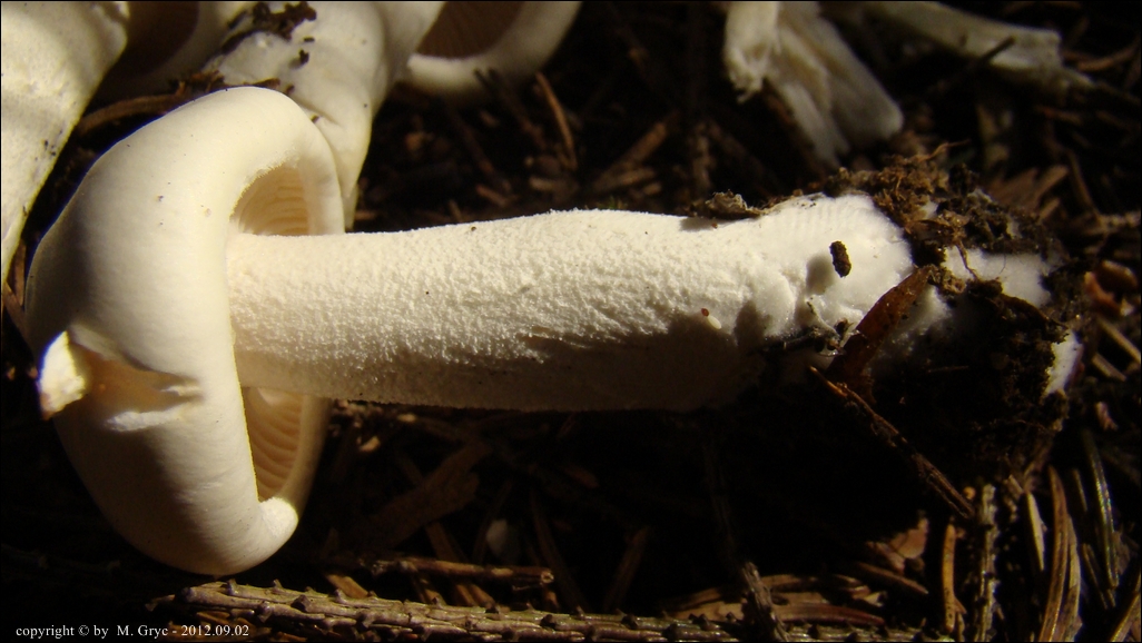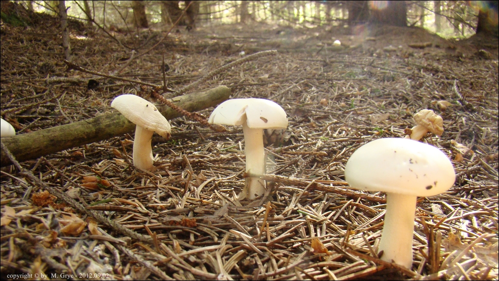 Substrat: Grupka owocników na bardzo ubogiej ściółce, cienka warstwa świerkowego igliwia na twardym gliniastym (wapiennym ?) podłożu.