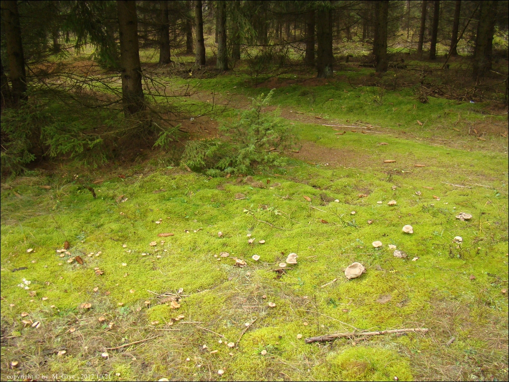 Siedlisko / Substrat: Skraj lasu iglastego (świerk, sosna); ziemia porośnięta mchem.