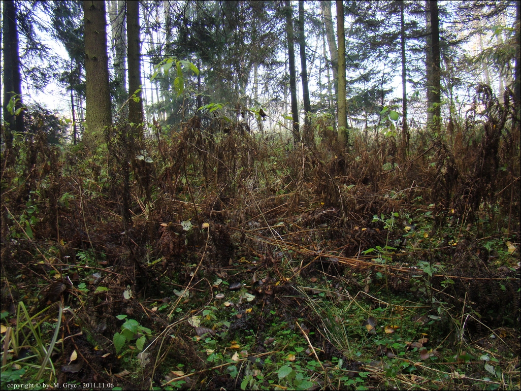 Siedlisko: Las o wilgotnym podłożu, mieszany (świerk, olsza, z rzadka topola i brzoza).