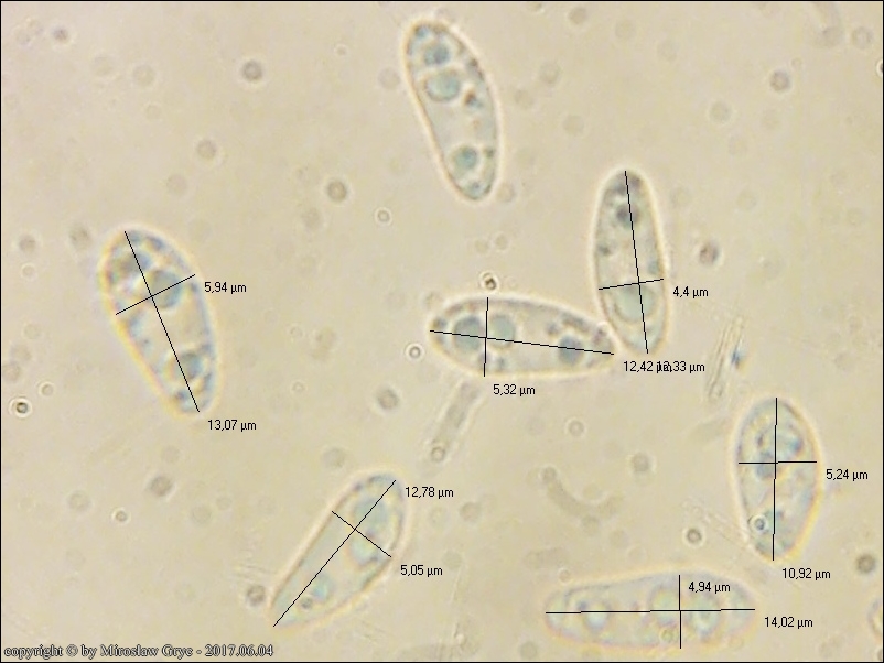 Innym podobnym gatunkiem jest H. imberbis. Jego zarodniki są bardzo regularne w kwestii zawartości kropli i praktycznie w prawie stu procentach występują dwie małe krople rozmieszczone biegunowo. Większe niż występujące w zarodnikach H.vernus ale zdecydowanie mniejsze niż u H. kathiae. Te trzy gatunki pomimo, że w zasadzie po cechach mikroskopowych są nieodróżnialne to obserwacja zarodników szybko rozwiewa wątpliwości. Dla uzyskania jednak pewności należy sprawdzic pozostałe cechy mikroskopowe ponieważ jest jeszcze zdecydowanie większa grupa gatunków o podobnym wyglądzie. Poza tym istnieje jeszcze w tym rodzaju wiele gatunków opisanych tylko wyrywkowo lub też zupełnie nowych dla nauki. Dlatego też istotne jest dokładne wykonanie dokumentacji fotograficznej wybitnie z owocników świeżych. Korzystanie z materiału suchego jest bardzo mało wiarygodne!