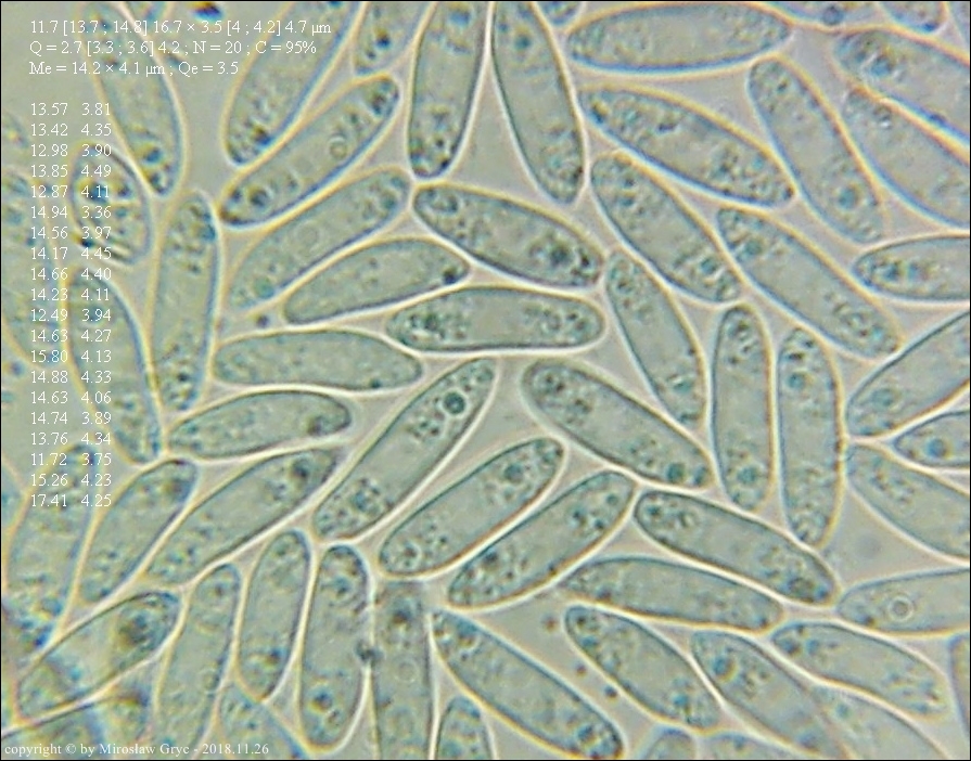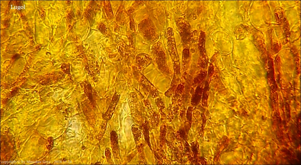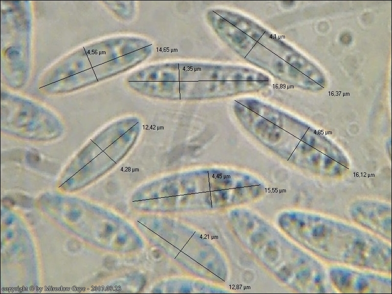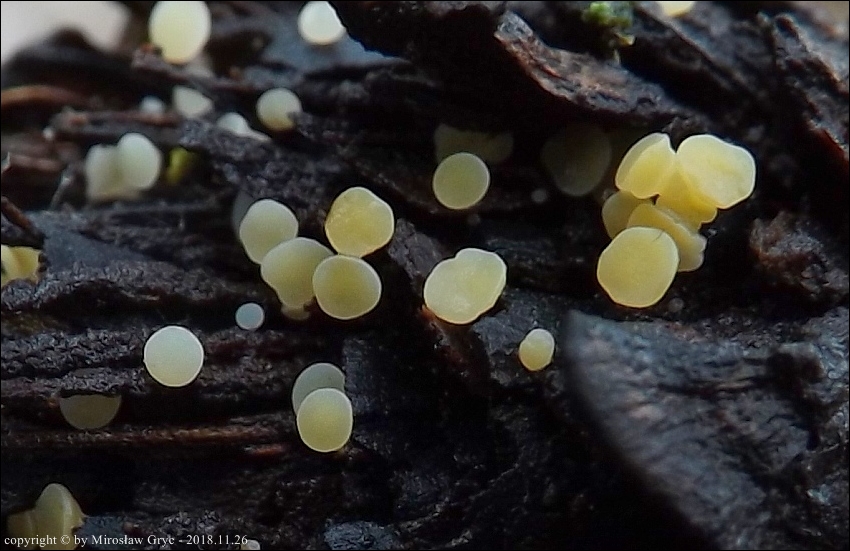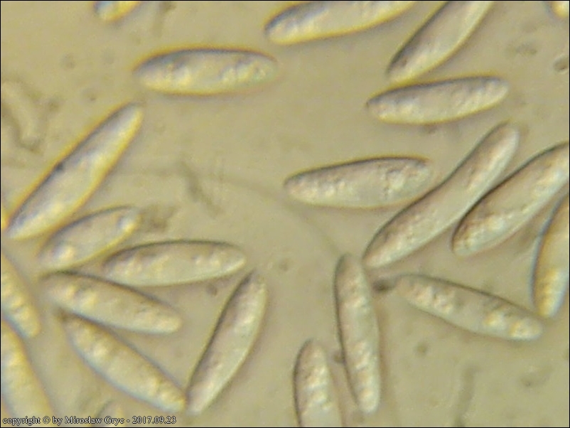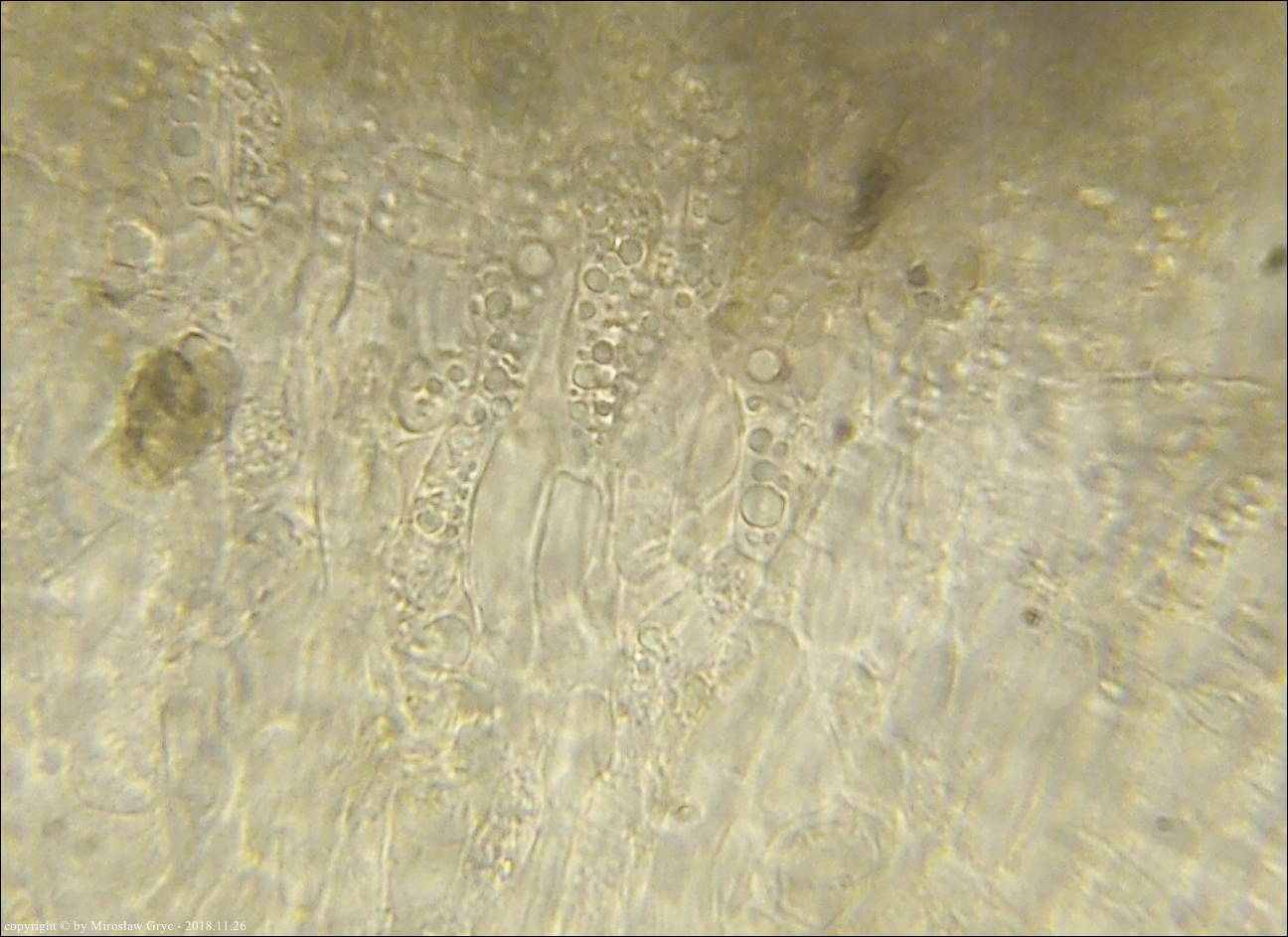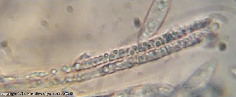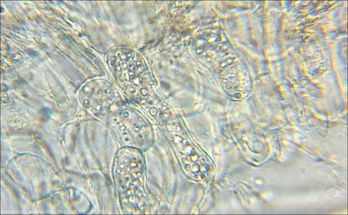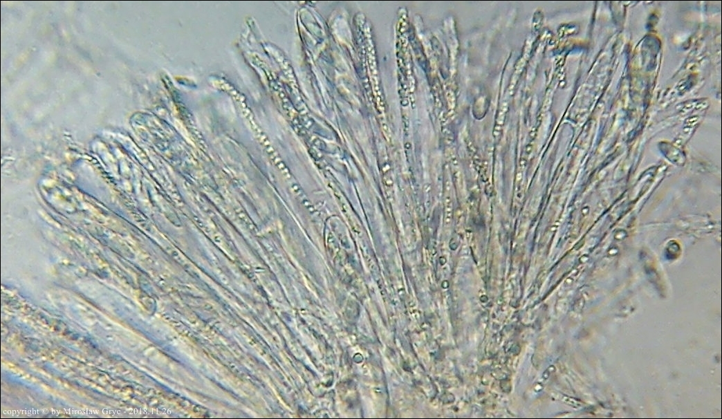 - Hymenoscyphus parasulphuratus - różni się zdecydowanie budową parafiz.