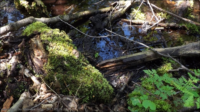 Siedlisko: Fragment lasu o zróżnicowanym drzewostanie (świerk. olsza, topola), okresowo podtapiany.
