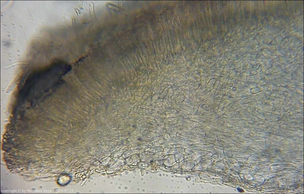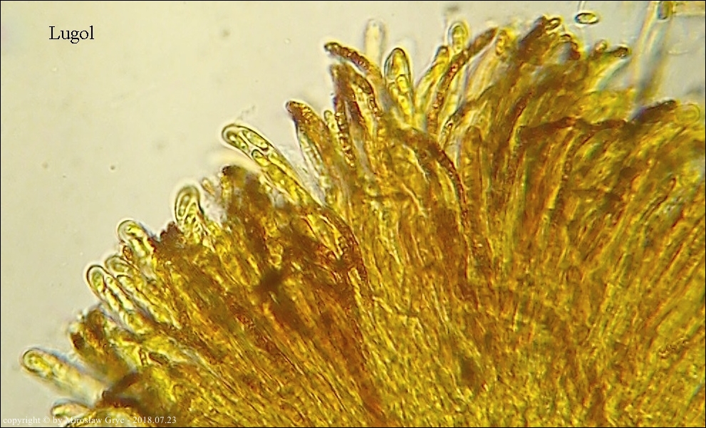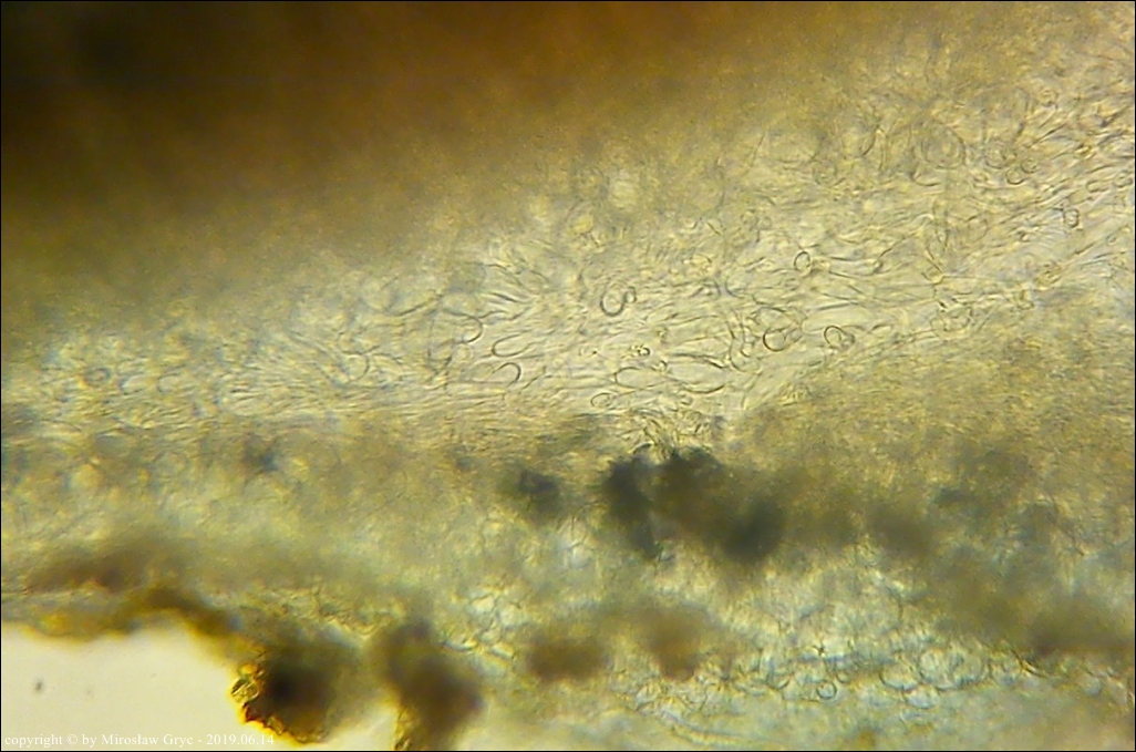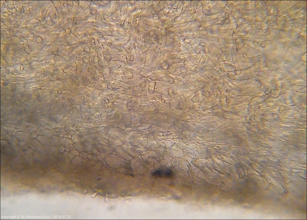 Na hymenium owocników tego gatunku, wystepuje bardzo rzadko spotykana Xenolachne longicornis.