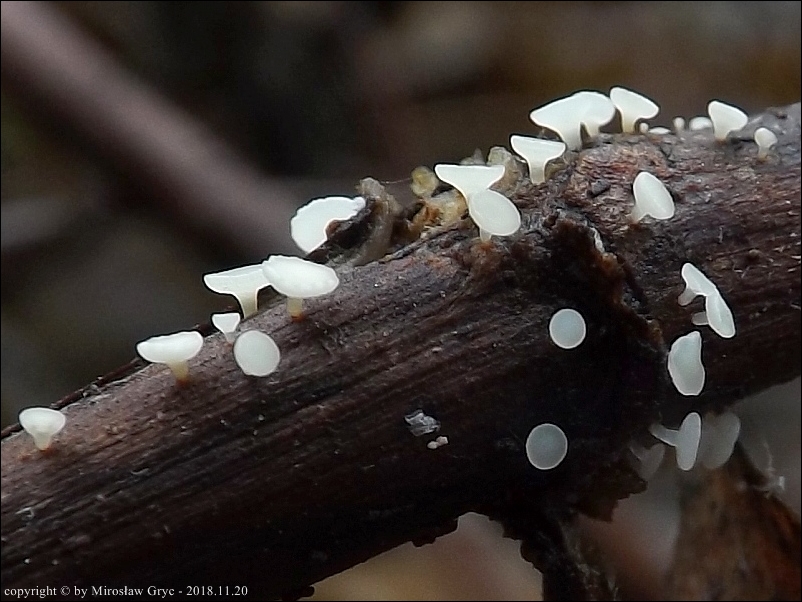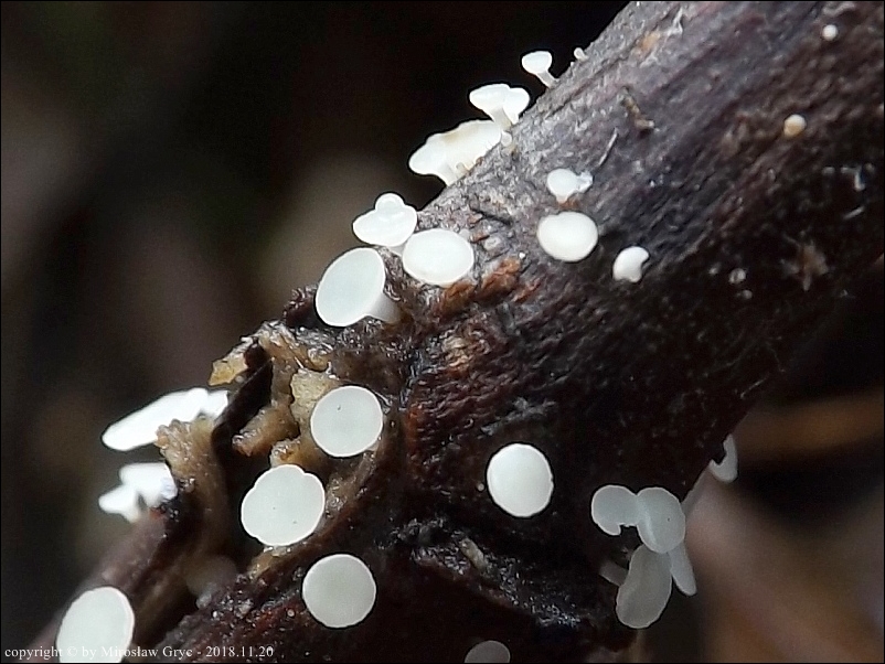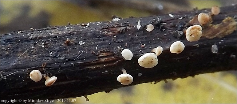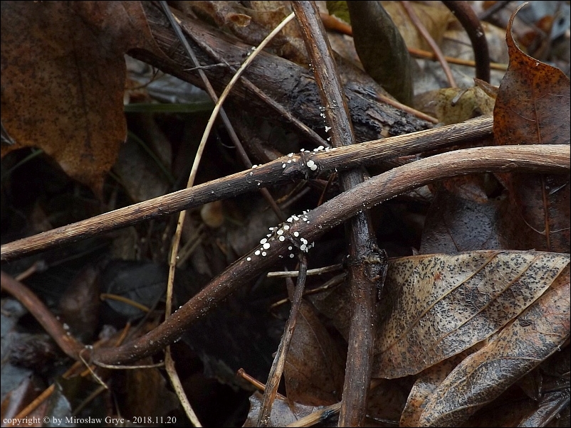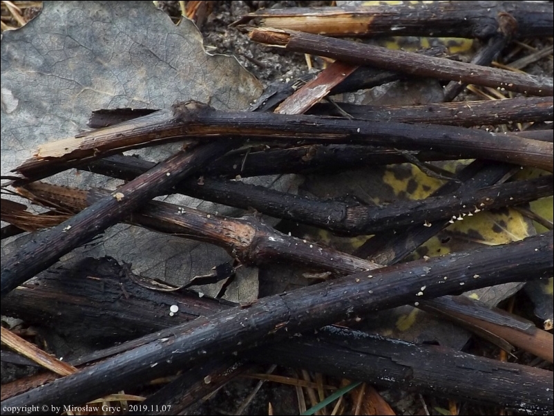 Substrat: Owocniki w kupie chrustu wywiezionego do lasu, na pędach winorośli (Vitis sp.)