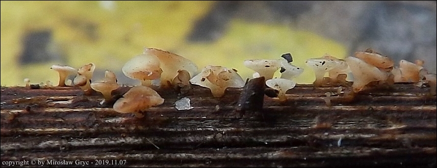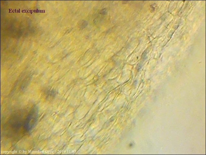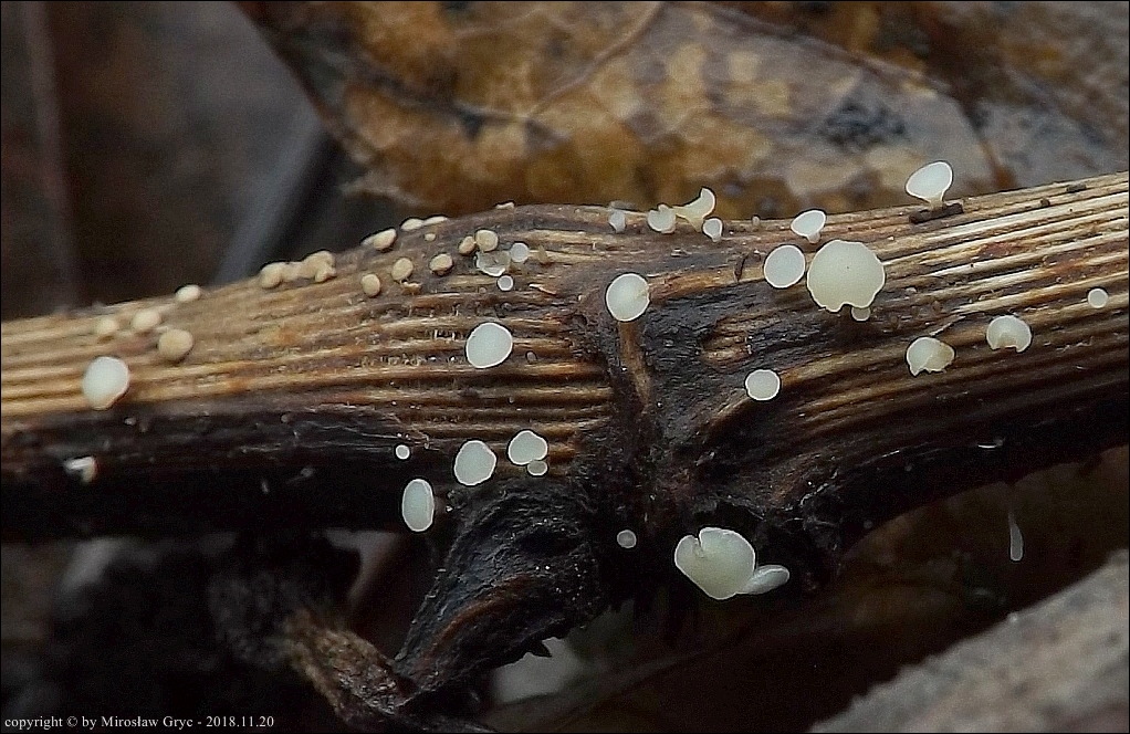 Owocniki z kolekcji, z dnia 2018.11.20 nie całkowicie odpowiadają cechami opisowi pierwotnemu. Zarodniki z powyższej kolekcji zawierały zbyt małe krople oleju. Pierwotny opis Helotium vitigenum kolekcji z 1863 roku mówi o czterech kroplach oleju. Jest jednak tak ogólny, że trudno na jego podstawie wywnioskować o jakie krople dokładnie chodzi?