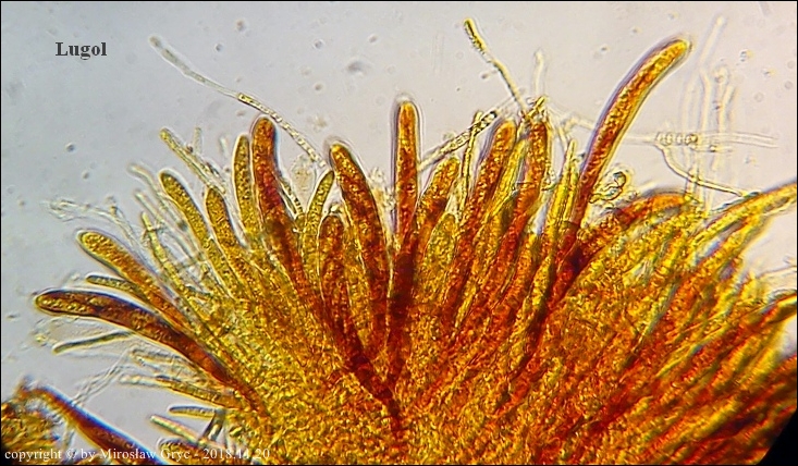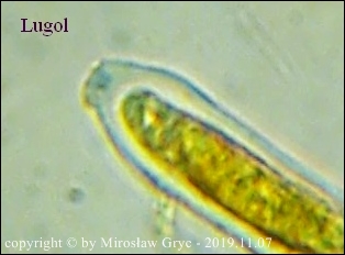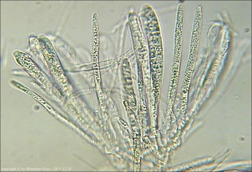 - parafizy z zawartością silnie załamującą swiatło. W przypadku mojej kolekcji zawartość parafiz miała dużą skłonność do zlewania się. Parafizy w niej występowały dość rzadko. Poza tym ukryte były wśród młodych worków przez co ich obserwacja znacznie była utrudniona.