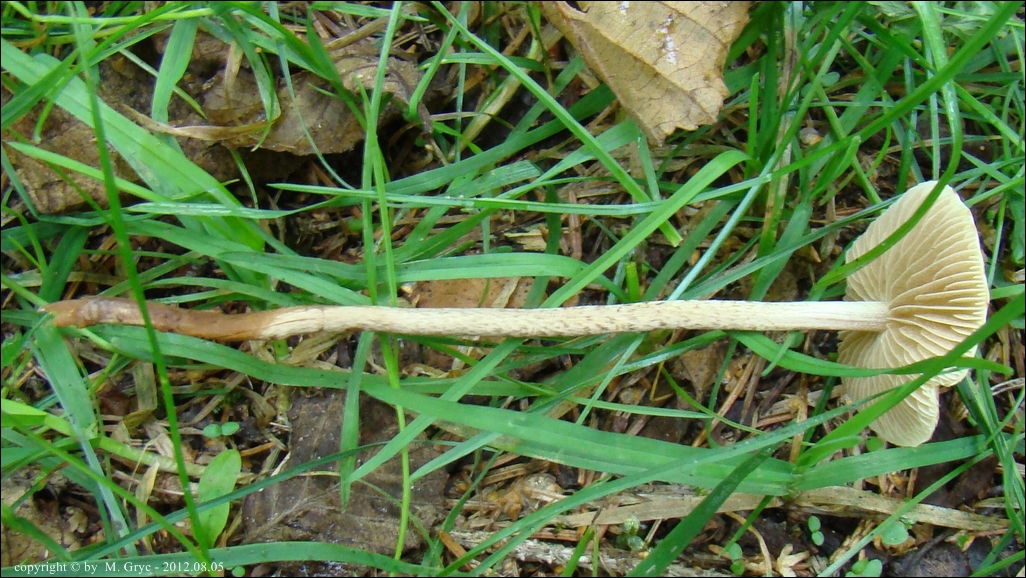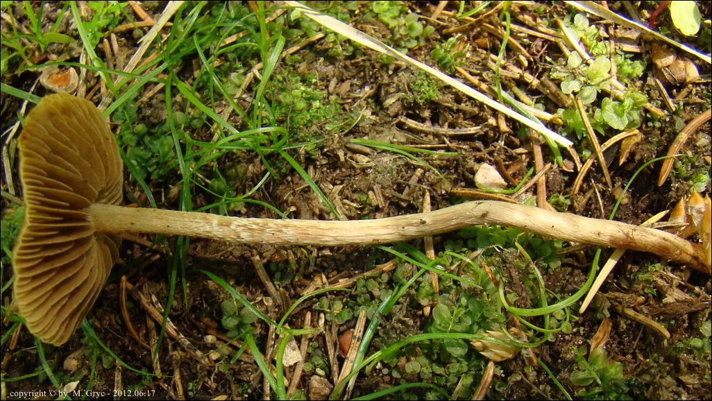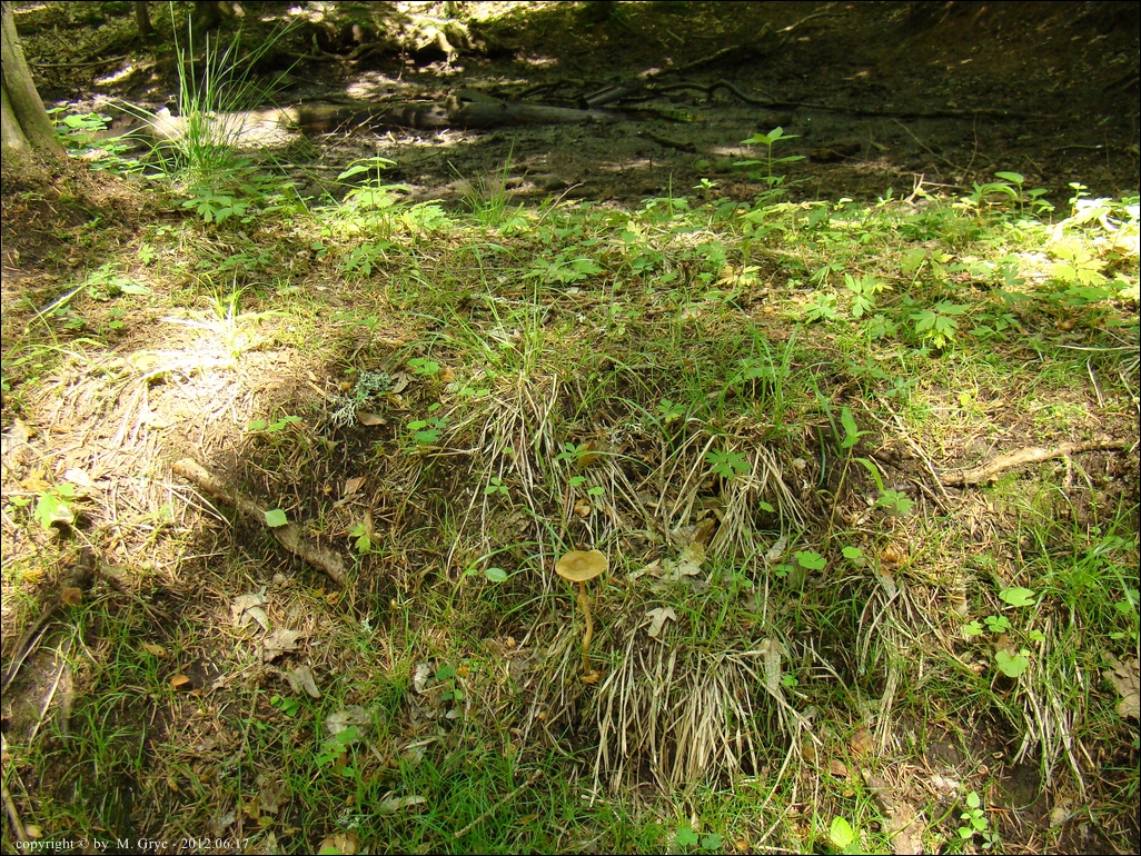 Substrat: Jeden owocnik nieopodal dzikiego babrzyska, podłoże wilgotne, udeptane, częściowo porośnięte trawą.