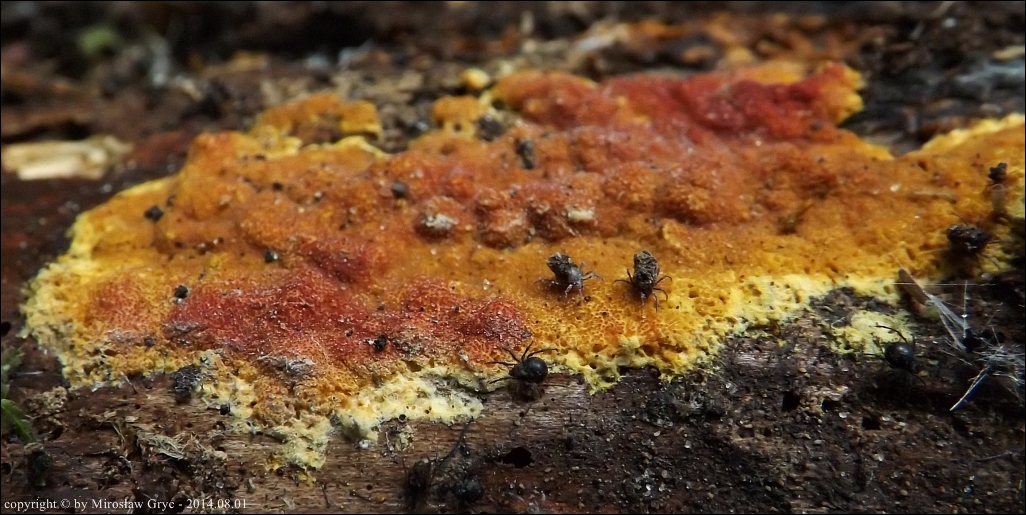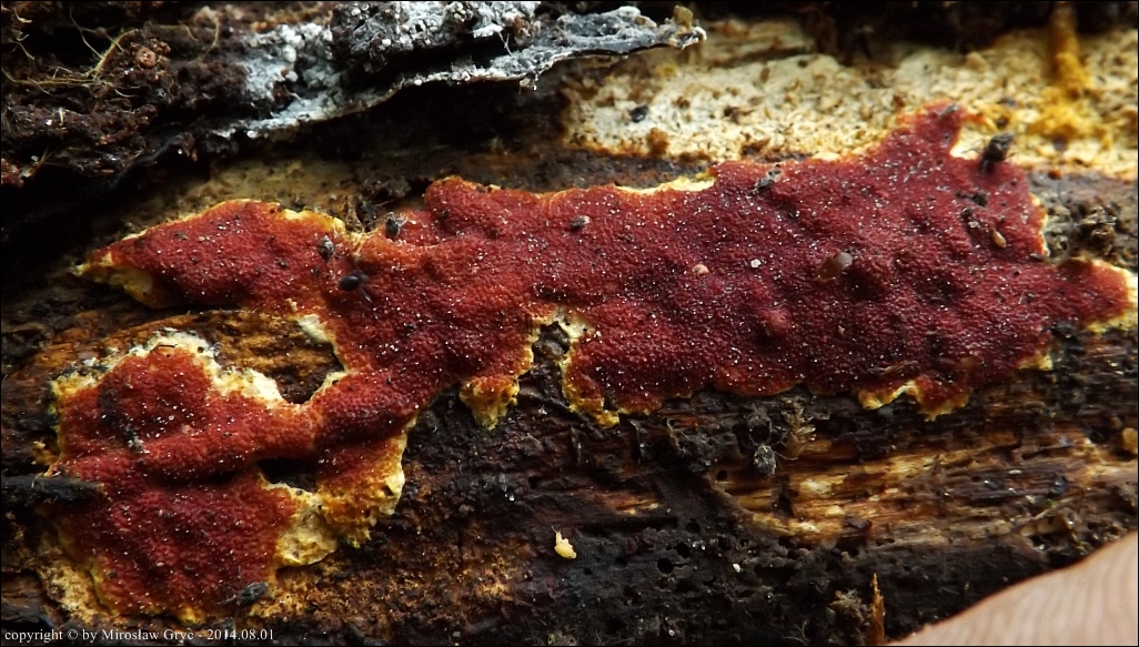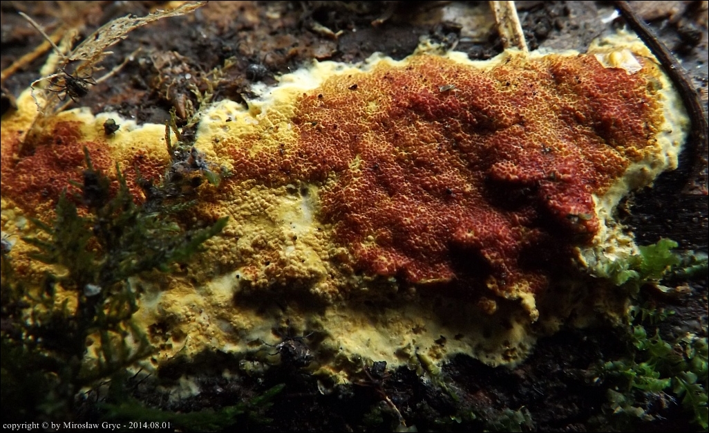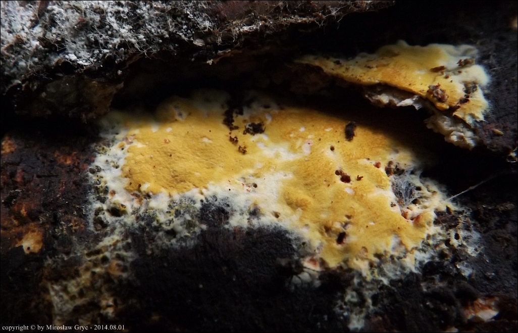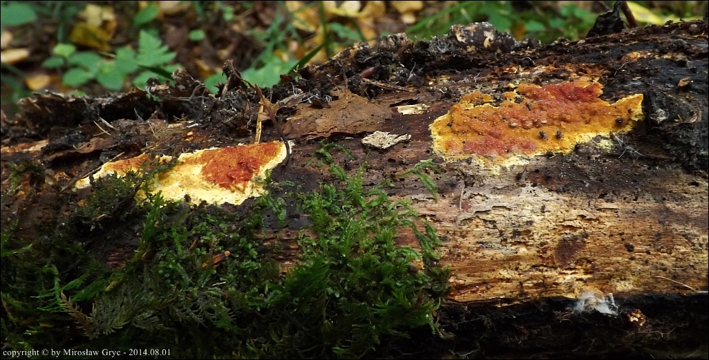 Substrat: Owocniki na dolnej stronie pnia młodej brzozy, leżacej na ziemi.