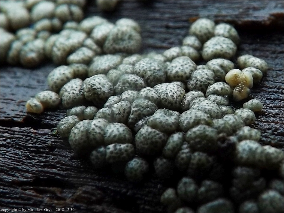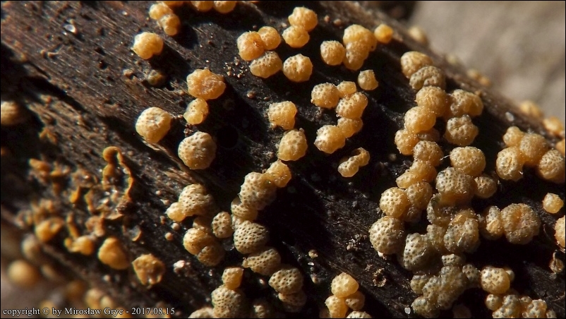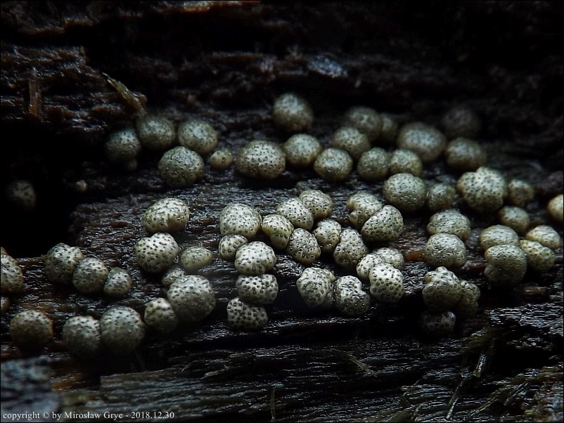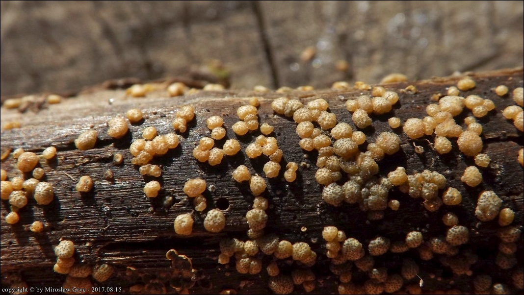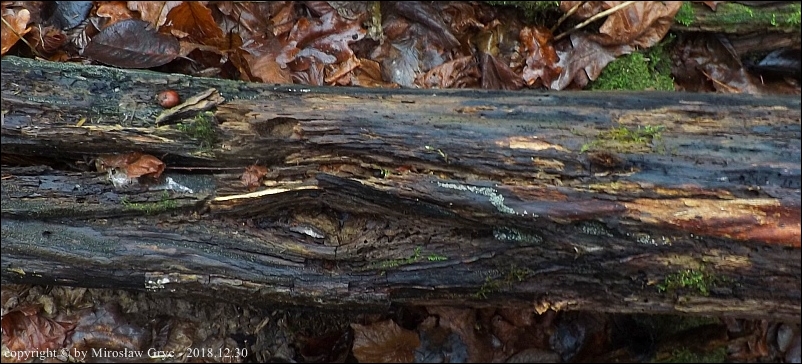 Substrat: Owocniki na leżącym na ziemi pniu drzewa, pochodzenia liściastego.
