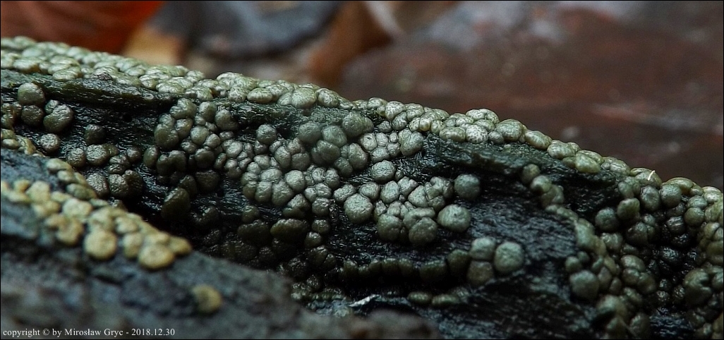 Substrat: Owocniki na leżącym na ziemi, kawałku patyka, pochodzenia liściastego.