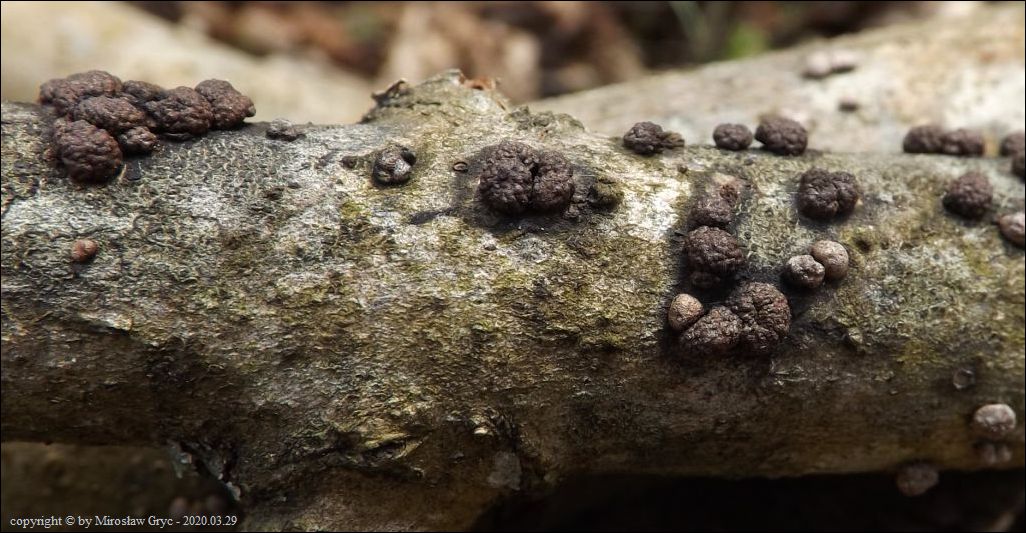 Substrat: Owocniki na martwych gałęziach jesionu (Fraxinus sp.) .