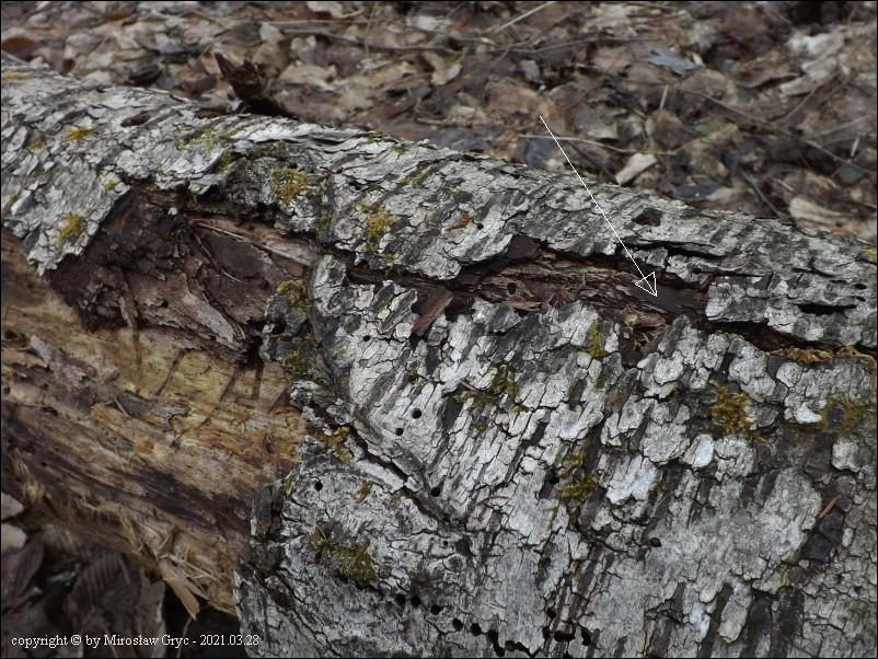Substrat: Owocniki na martwym pniu brzozy (Betula sp.) .