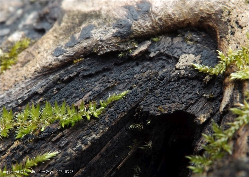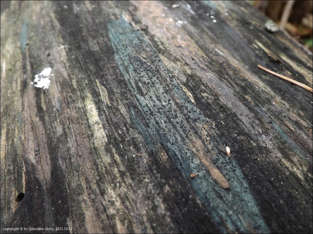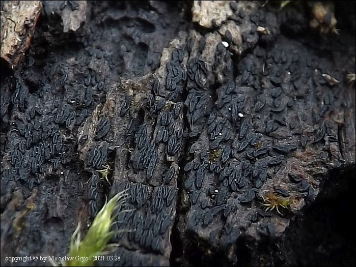 Substrat: Owocniki masowo na martwym pniu powalonej olszy (Alnus sp.) .