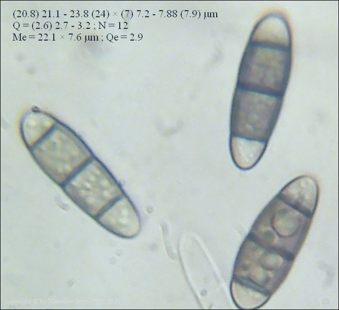 Zarodniki: (18.7) 19.4 - 25.9 (27.1) × 6.9 - 7.5 (9.2) µm
