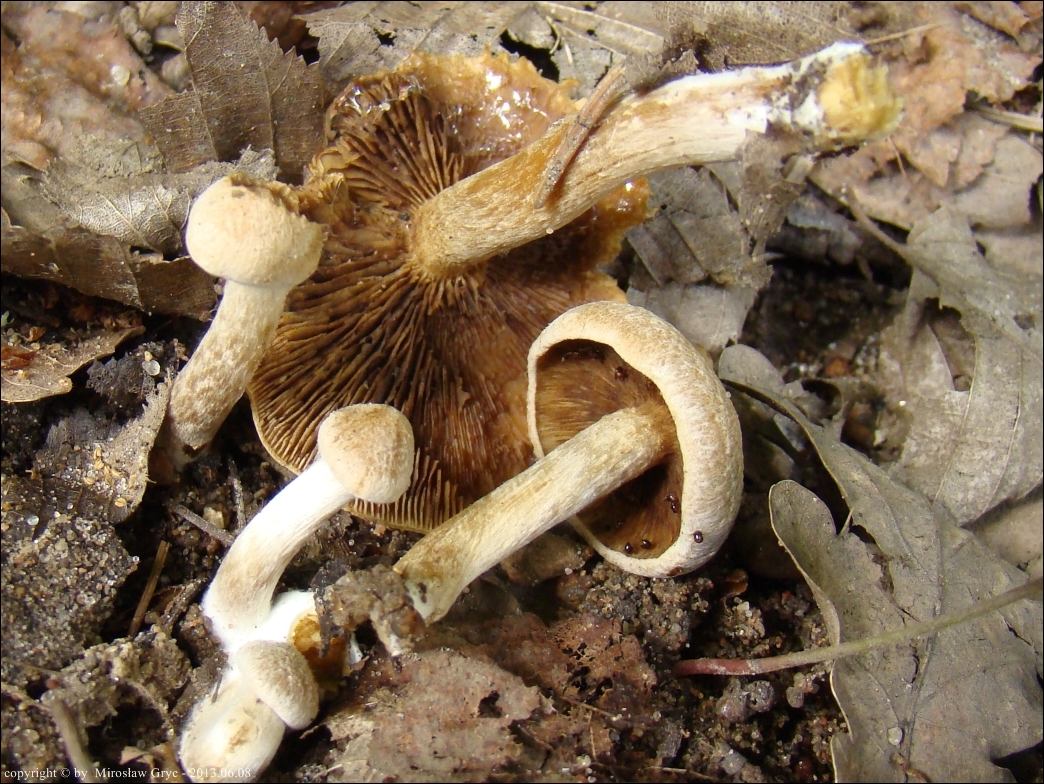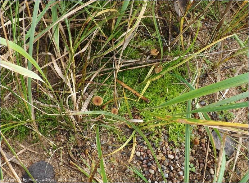 | 2013.10.13 | Podobnie jak wyżej, stare wyrobisko pożwirowe w pobliżu Ogrodniczek. | Kilkanaście owocników na żwirowym stoku, z rzadka porośniętym sosenkami. Lokalizacja bardzo zbliżona do wyżej wymienionego stanowiska, ale miejsce zupełnie inne. Nr. wątku na Bio-Forum - 33/627303. Mikroskopował Błażej Gierczyk. Stanowisko podpięte do GREJ: ID 230818. (patrz uwagi wyżej, zawarte przy stanowisku z dnia; 2012.08.28) |
