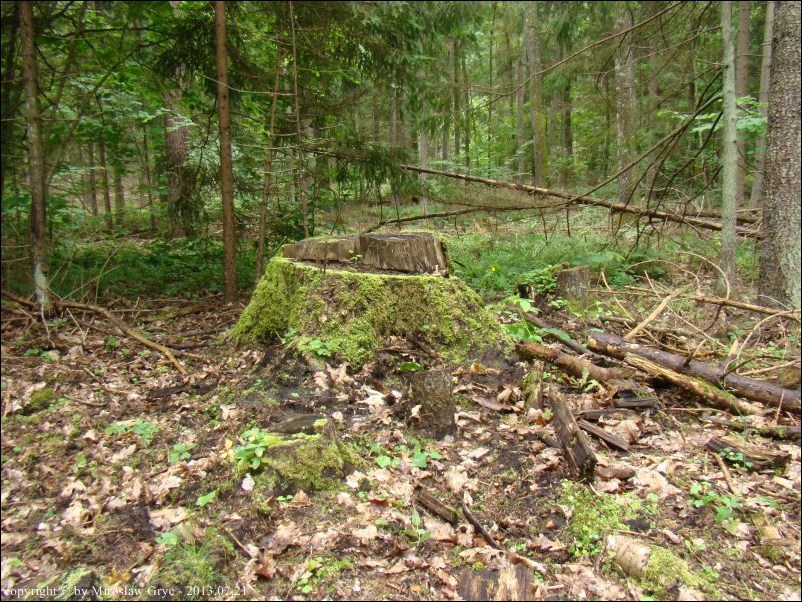 Siedlisko: Las mieszany ze znaczną przewagą świerka, liściaste sporadycznie, większość wycięta.
