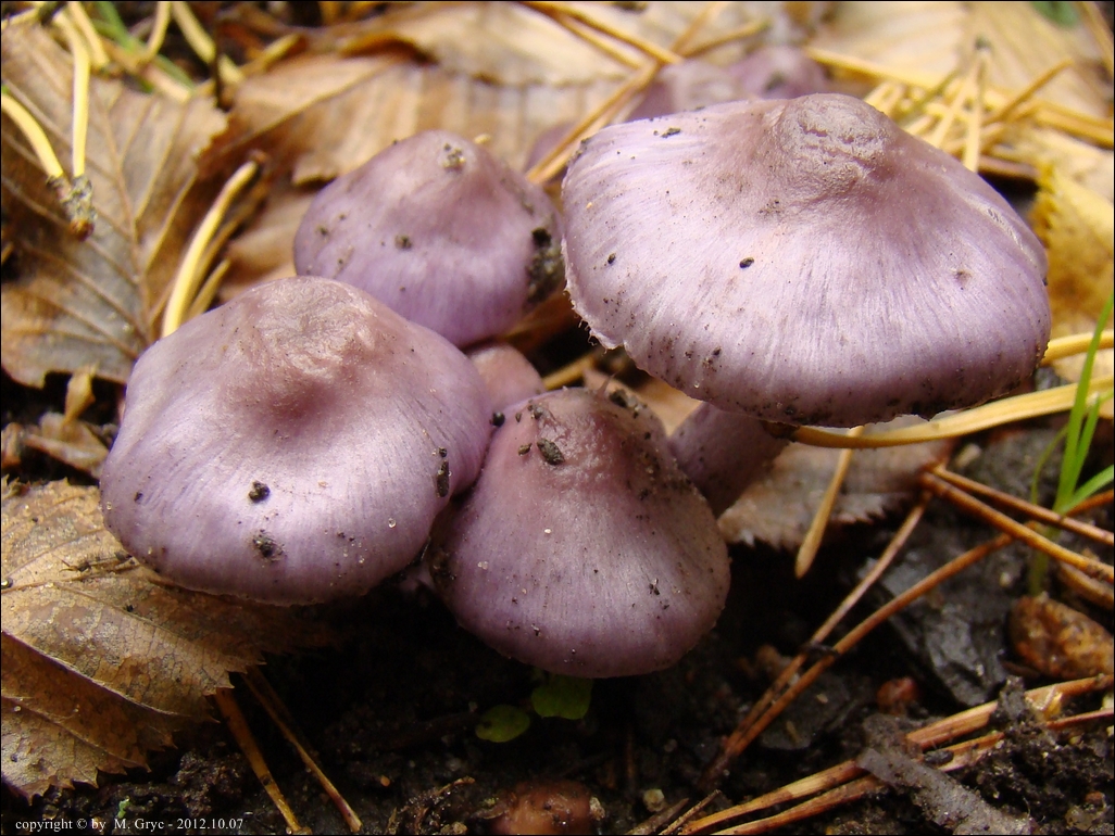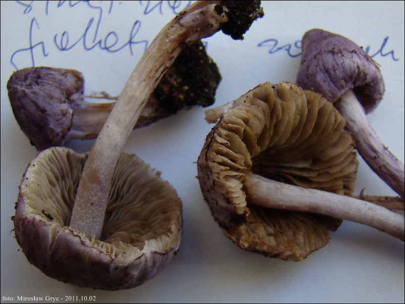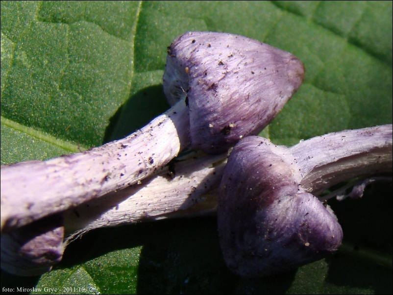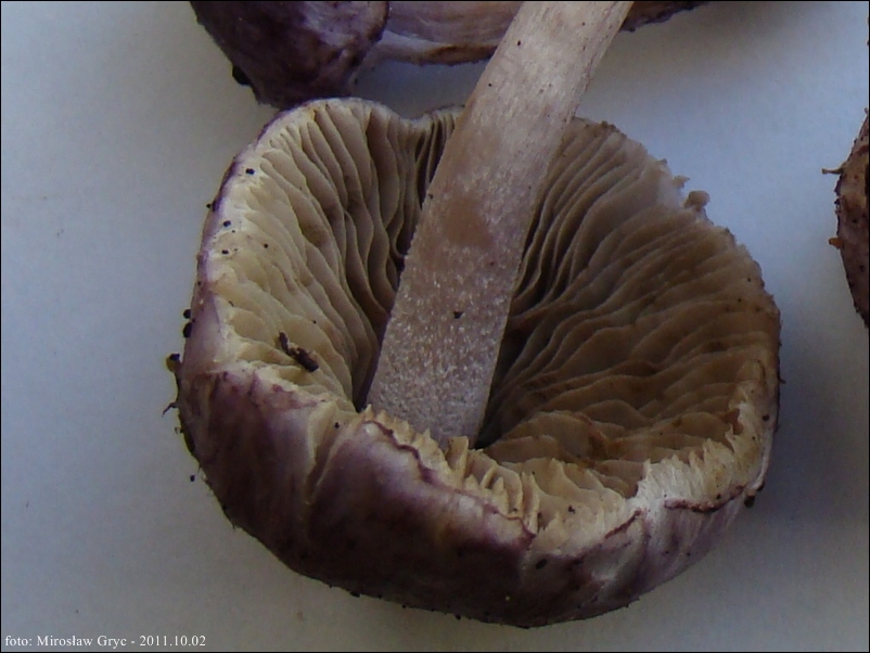Notatka: Razem z nimi, na tym samym miejscu, wyrastał jeden owocnik zupełnie odmienny (widoczny na zdjęciach), z całą pewnością nie dało sie ustalić jego gatunku ale najprawdopodobniej jest to Inocybe albovelutipes (oczywiście na podstawie badań mikroskopowych przeprowadzonych przez B. Gierczyka).