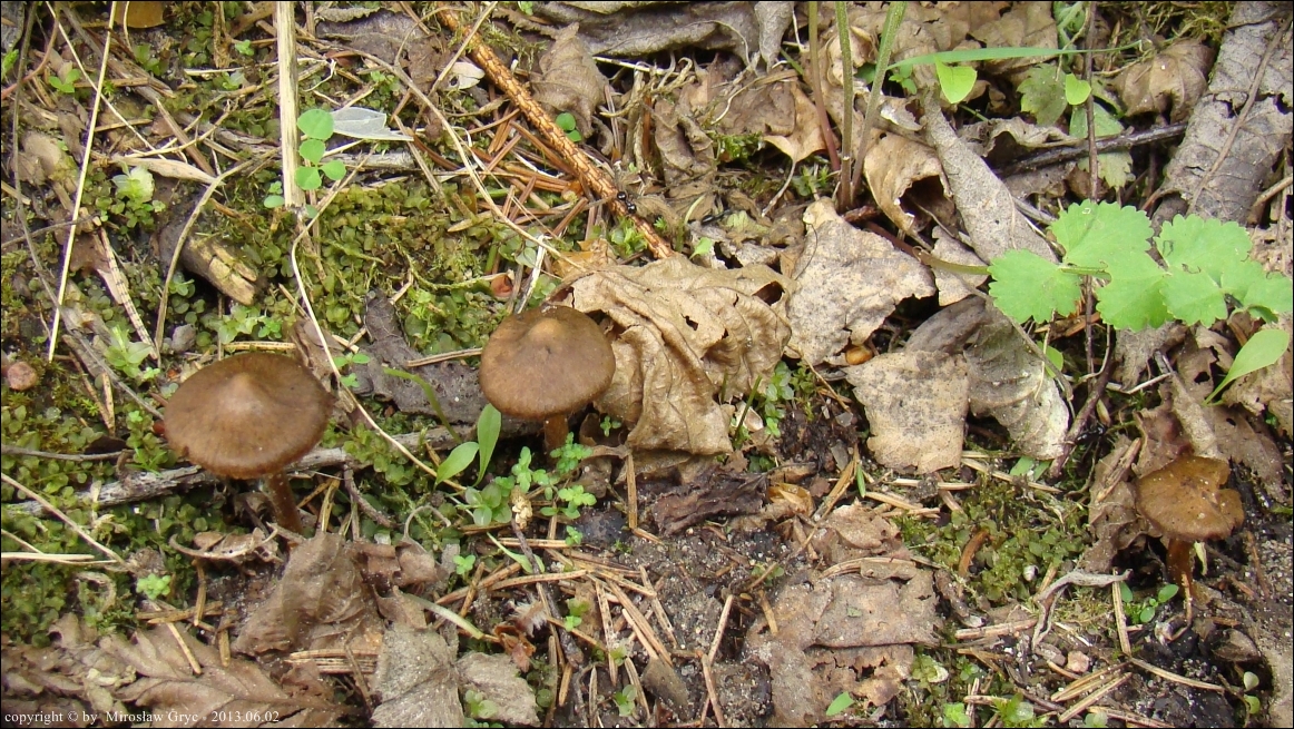 Siedlisko / Substrat: Nieużytki rolne, częściowo samoczynnie zalesione drzewostanem mieszanym. Kilka owocników na skraju koleiny.