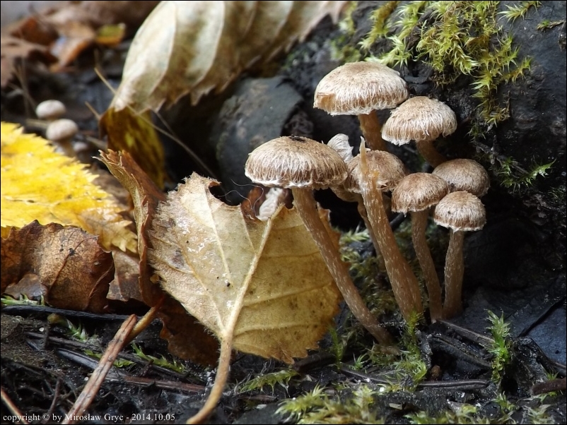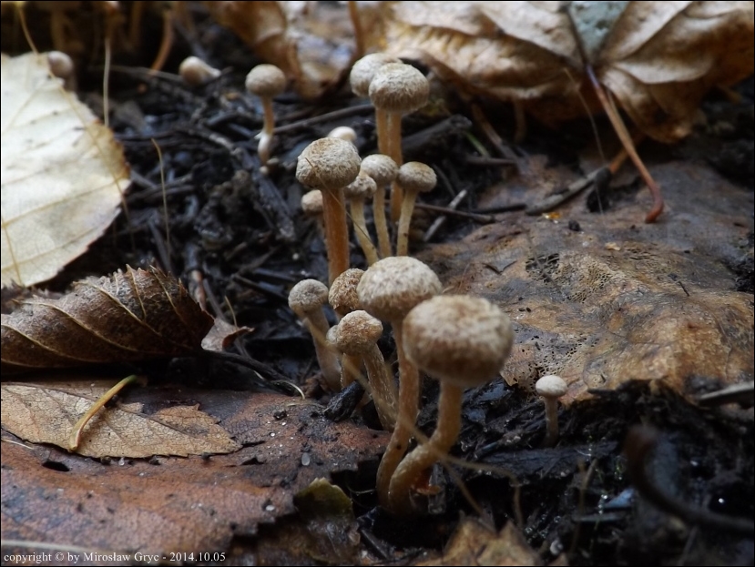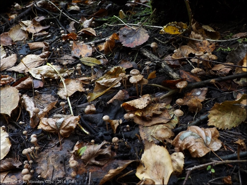 Siedlisko / Substrat: Wilgotna niecka w terenie. Owocniki masowo na powierzchni około 1 m kwadratowego, u podstawy martwej brzozy.