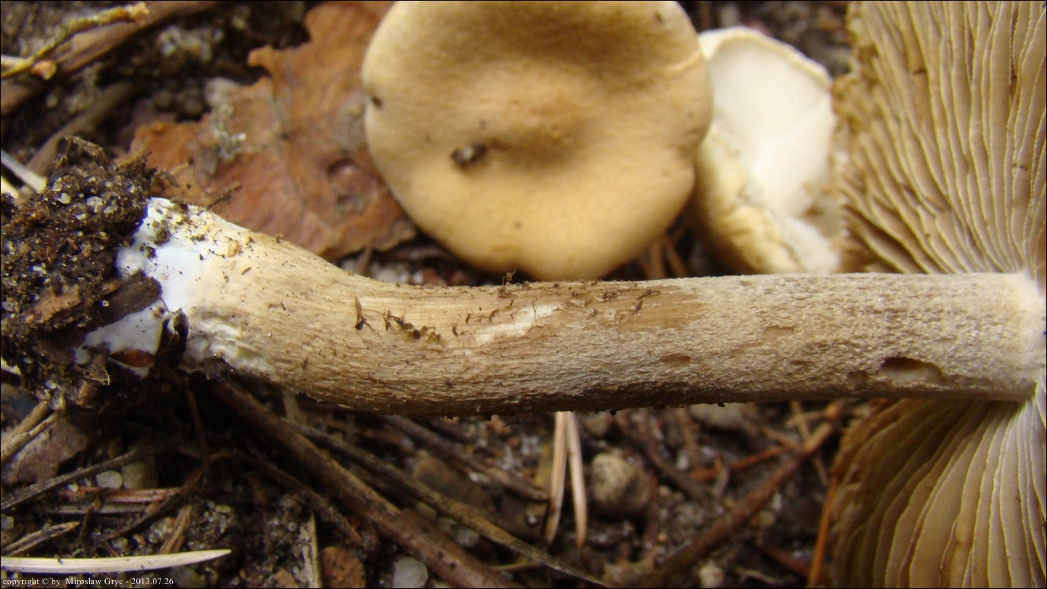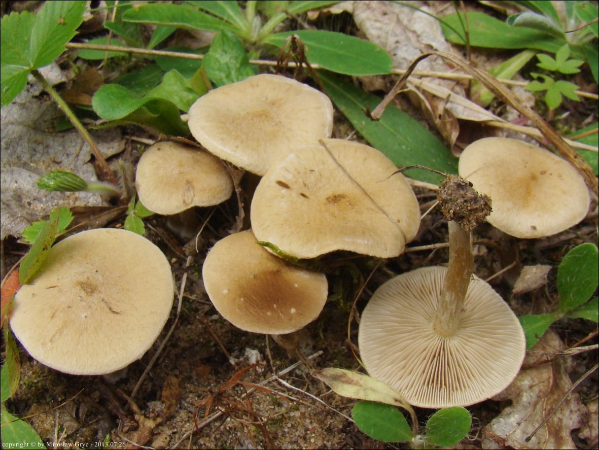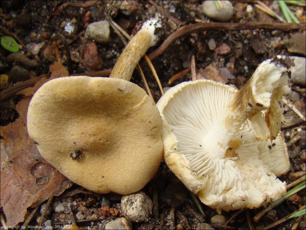 Siedlisko / Substrat: Grupka owocników na poboczu drogi leśnej, podłoże nieco żwirowe, las iglasty (sosna, świerk, liściaste b. rzadko).