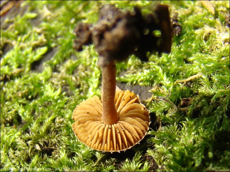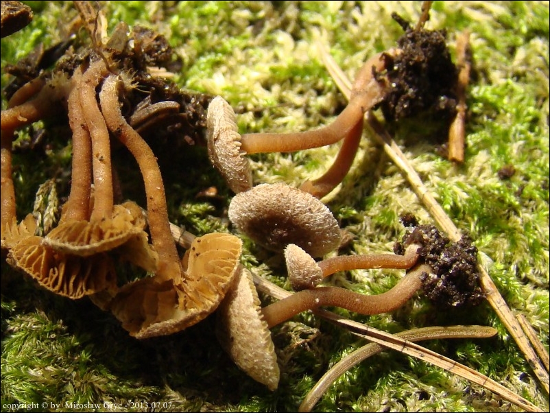 Siedlisko / Substrat: Zadrzewienie mieszane (olcha, świerk, brzoza, rzadziej inne), teren wilgotny. Owocniki pobrane z dwóch grup oddalonych od siebie o około 50 m.