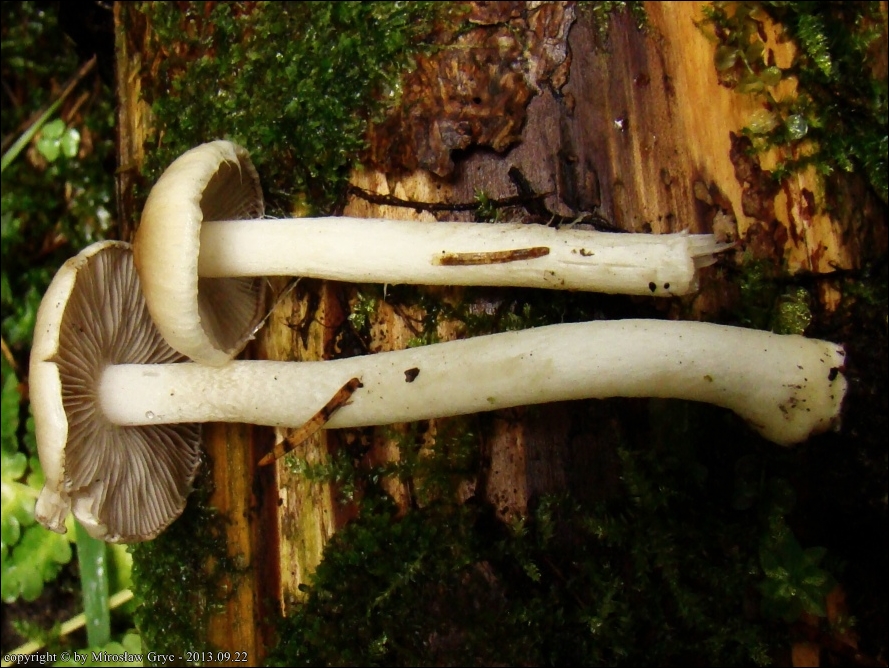 Siedlisko / Substrat: Fragment lasu o wybitnie świerkowym zadrzewieniu, kilka lat po przeprowadzonej przecince. Dwa owocniki na świerkowym chruście, poprzerastanym mchem.