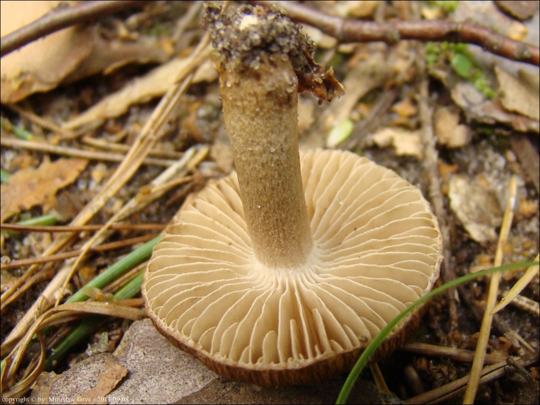 Substrat: Jeden owocnik na ubogiej sciółce, praktycznie na gołej ziemi.