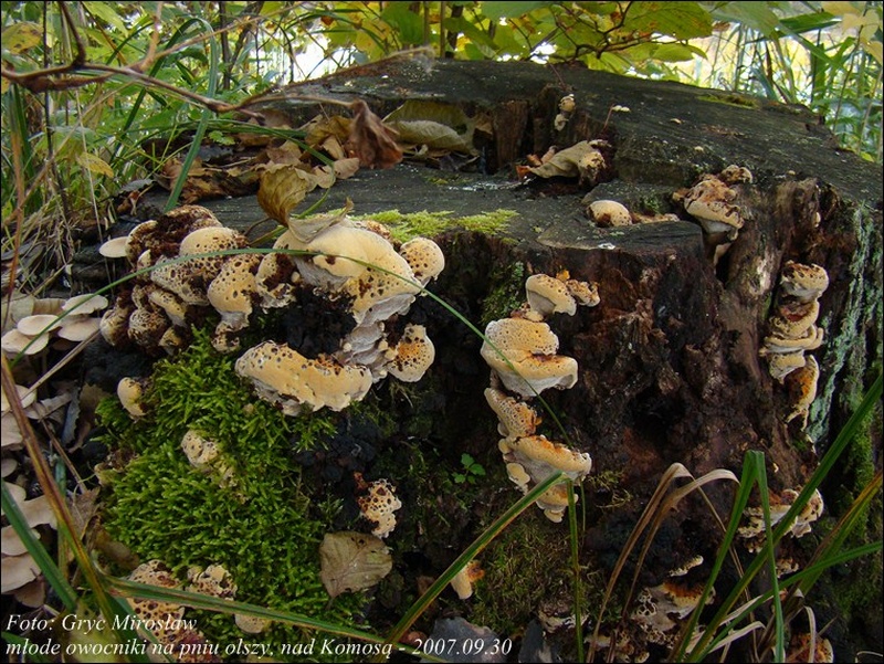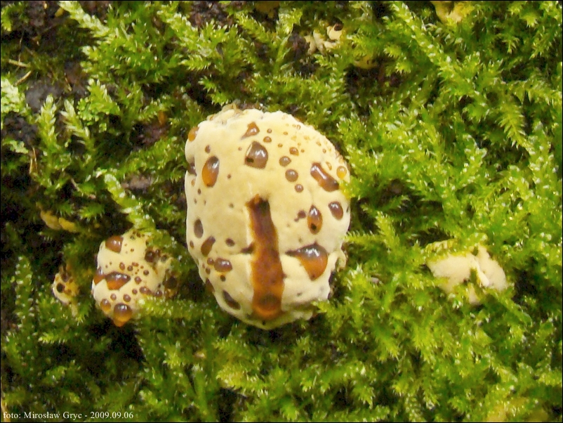 Wysyp biały (widoczny na zdjęciu nr. 20, na mchu pod owocnikiem).