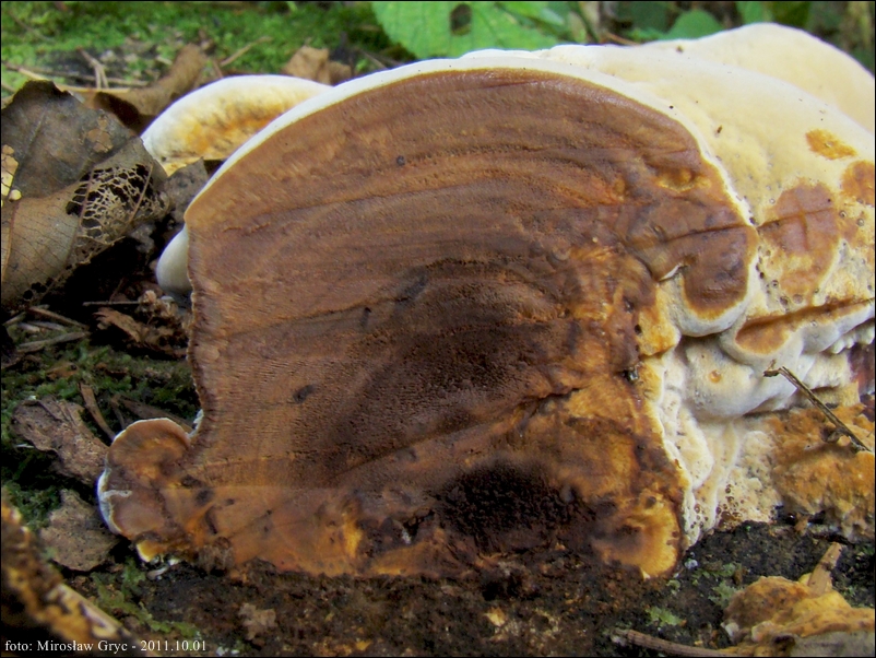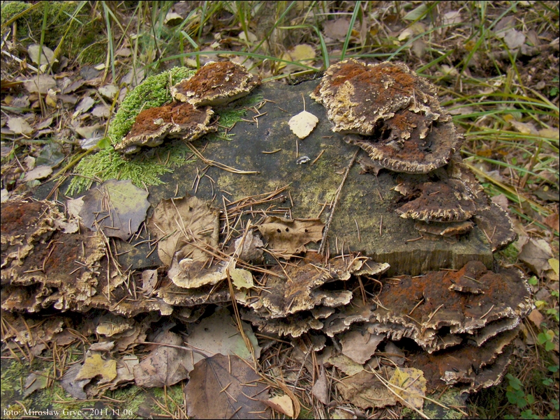 - włoknouszek guzkowaty (Inonotus nodulosus)
