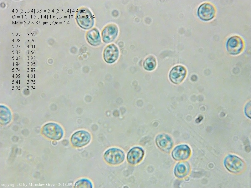 Zarodniki 4,5-7 x 3-4,5 µm.