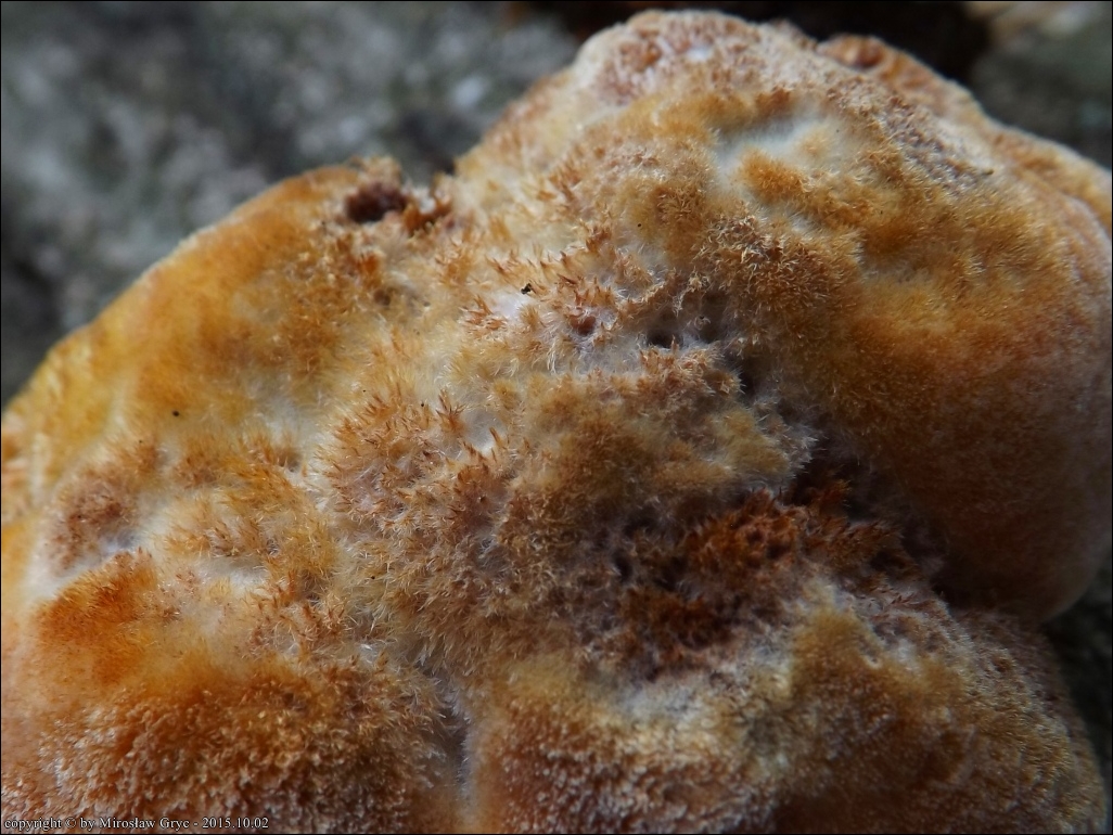 Substrat: Owocniki ubiegłoroczne ale o dobrze zachowanych cechach mikroskopowych. Kilka sztuk na leżacym na ziemi grubym konarze topoli.