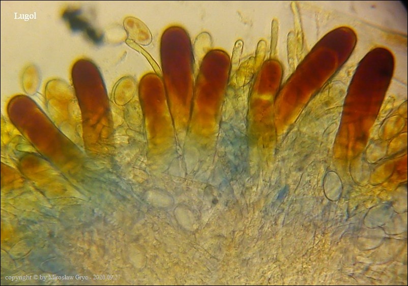 W opracowaniu: "Iodophanus carneus and I. testaceus (Ascomycota-Pezizales):Independent taxonomic identity or synonymy? A study of their morphology and isozymes," autorzy poddaja pod wątpliwość sens takiego podziału w sytuacji gdy nie stwierdzono pomiędzy tymi taksonami, odmiennych cech mikroskopowych.