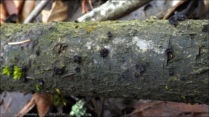 Substrat: Gałąź wierzby (Salix sp.) , leżąca na ziemi.