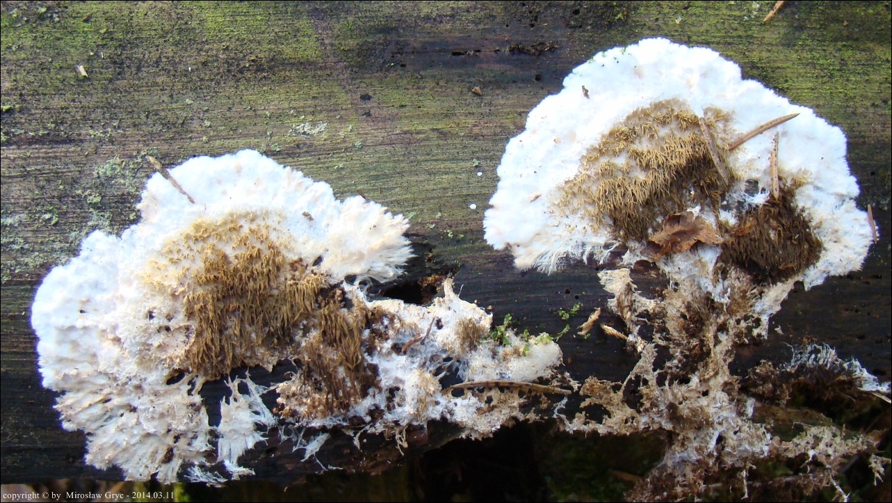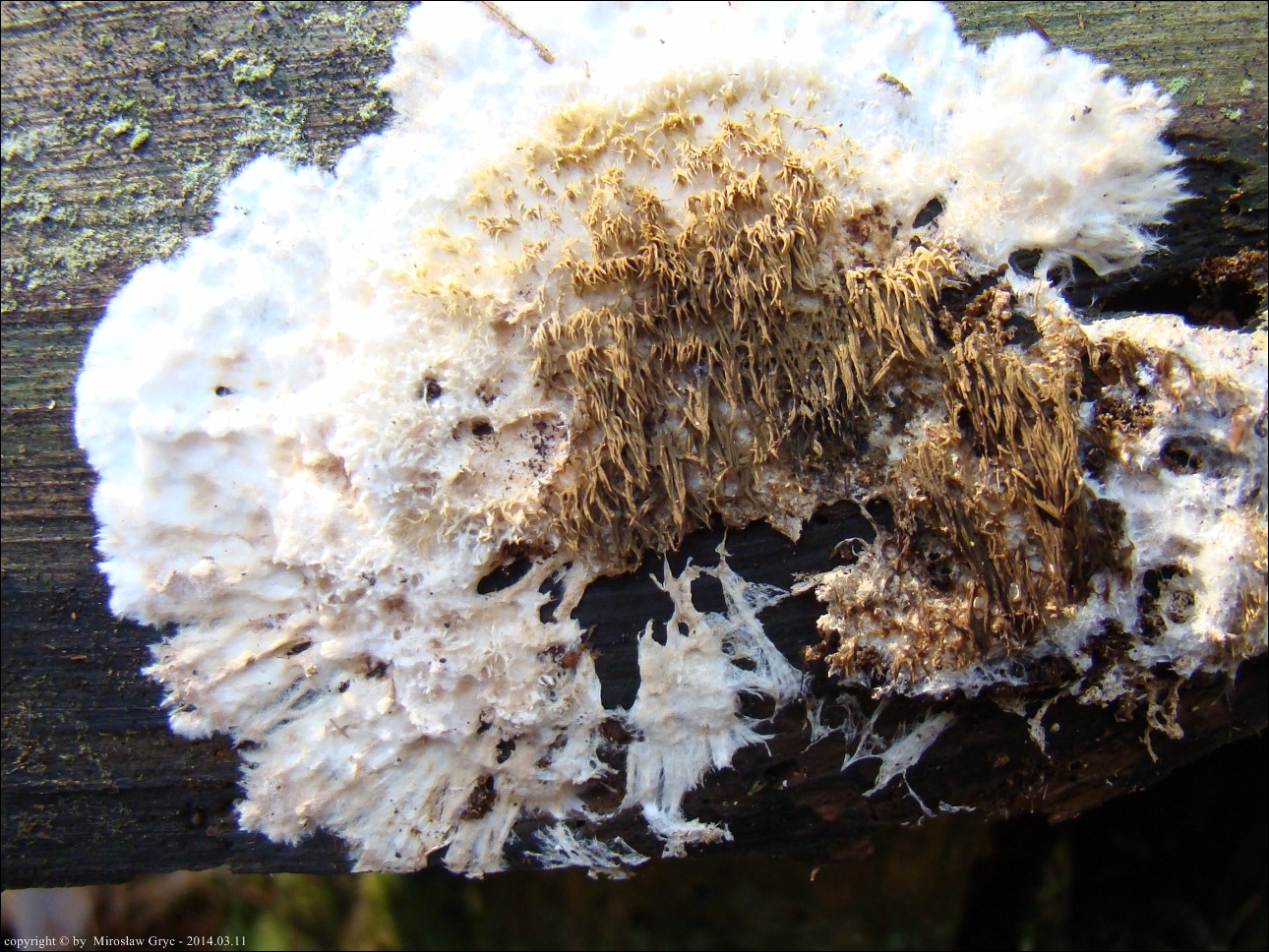 Mycoacia alboviride (Morgan) L.W. Mill. & J.S. Boyle, Univ. Iowa Stud. nat. Hist. 18(2): 43 (1943)