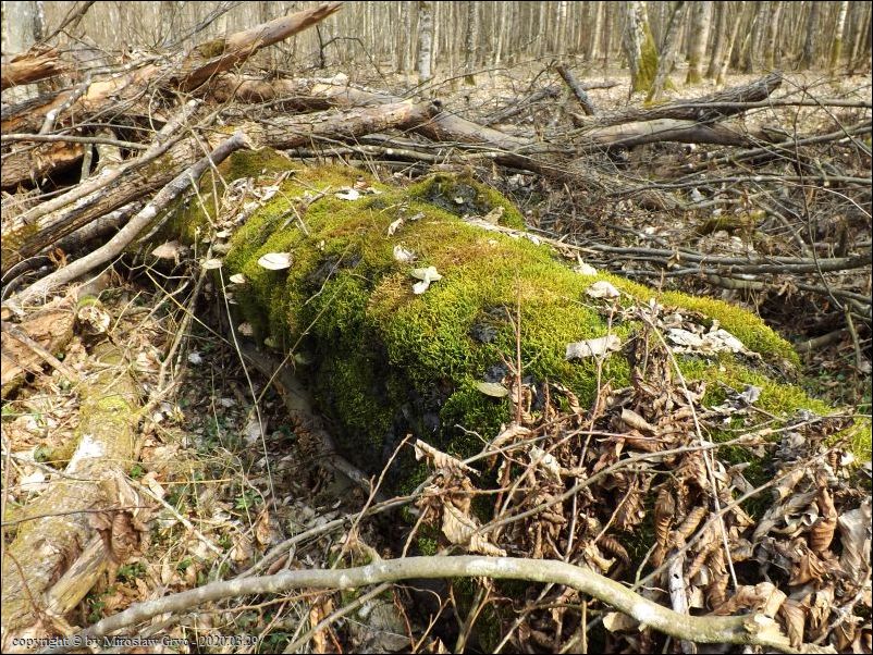 Substrat: Owocniki masowo na pniu, kilka lat temu powalonego dębu.