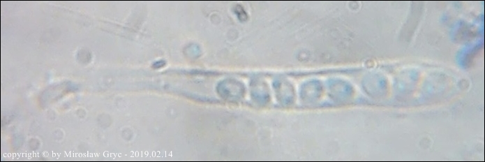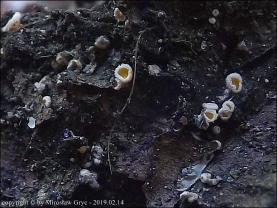 Substrat: Owocniki na wysięku żywicznym złamanego świerka.
