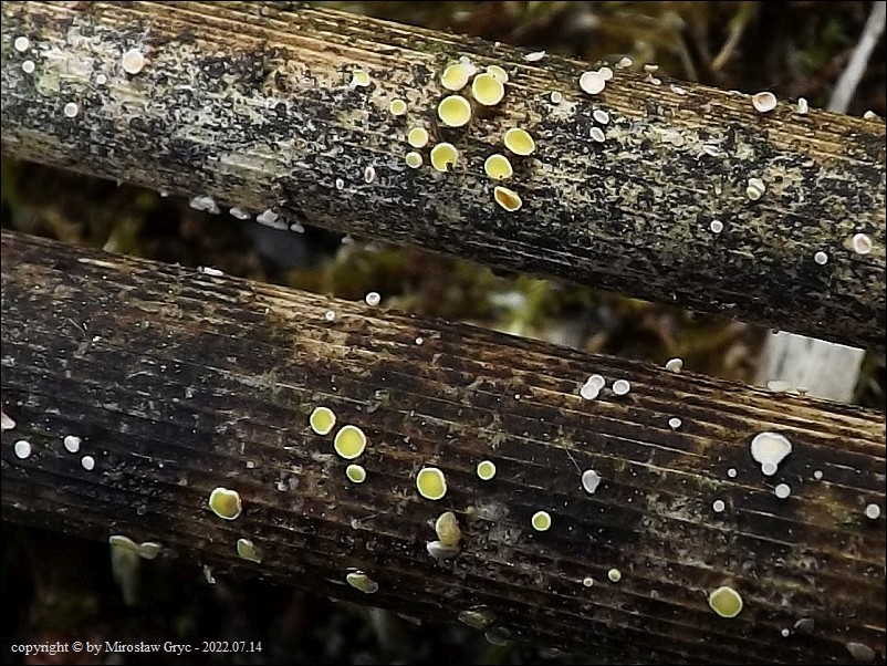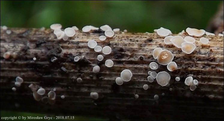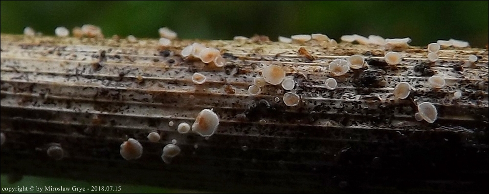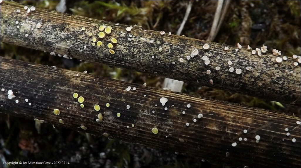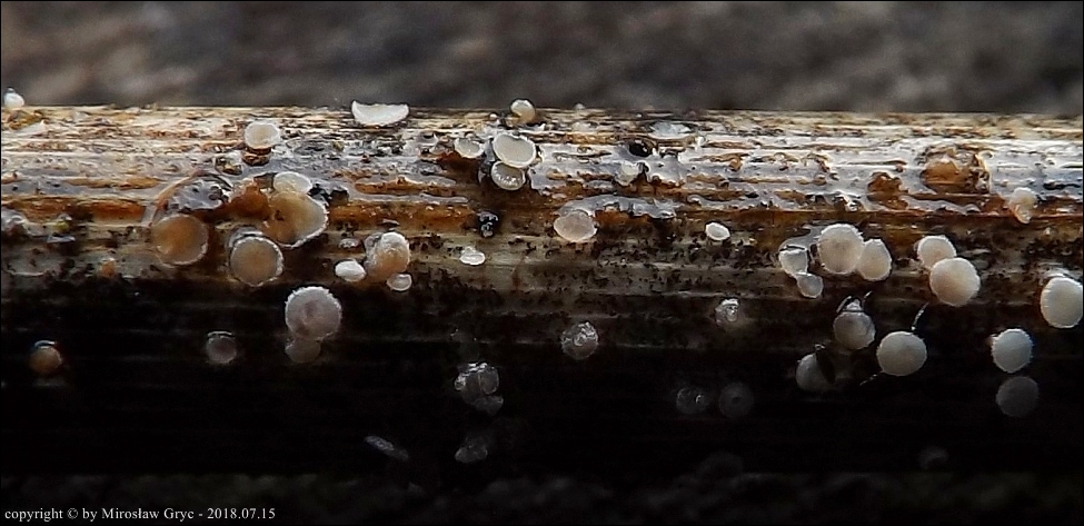 Substrat: Stare, nieużytkowane wyrobisko pożwirowe na E od Ogrodniczek, owocniki również na martwych pędach trzcin.